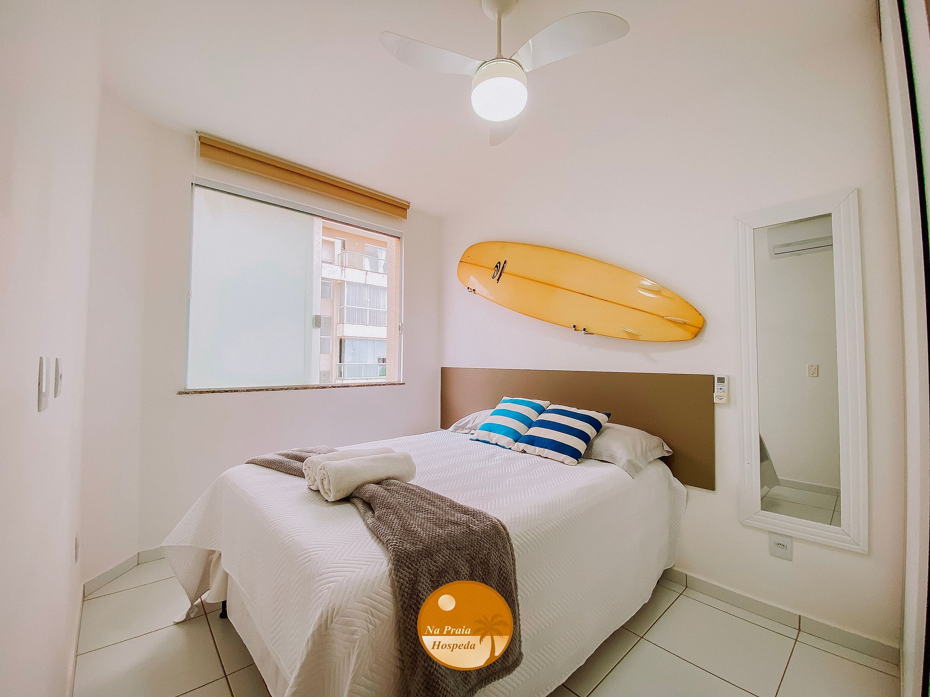 * Quarto 1: 1 Cama de casal, Smart TV, Ar condicionado Split, Varanda com vista mar e rede de descanso, guarda roupas e Banheiro completo com água quente.