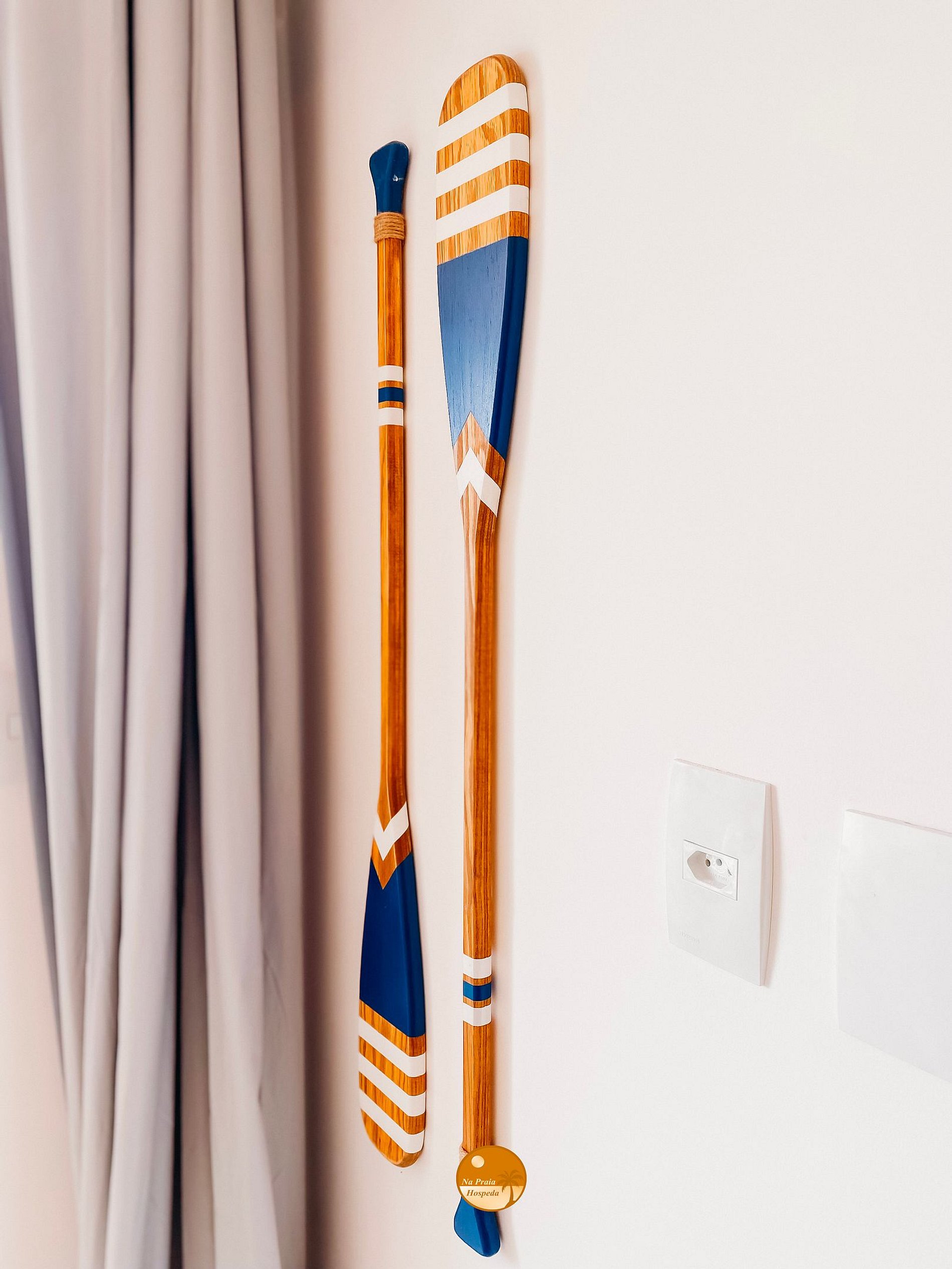 1 Cama de casal, 1 colchão de solteiro, Ar condicionado Split, 1 guarda roupas com cabides, TV, Cortina Blackout, Vista Mar, Banheiro completo com água quente e Secador de Cabelos.