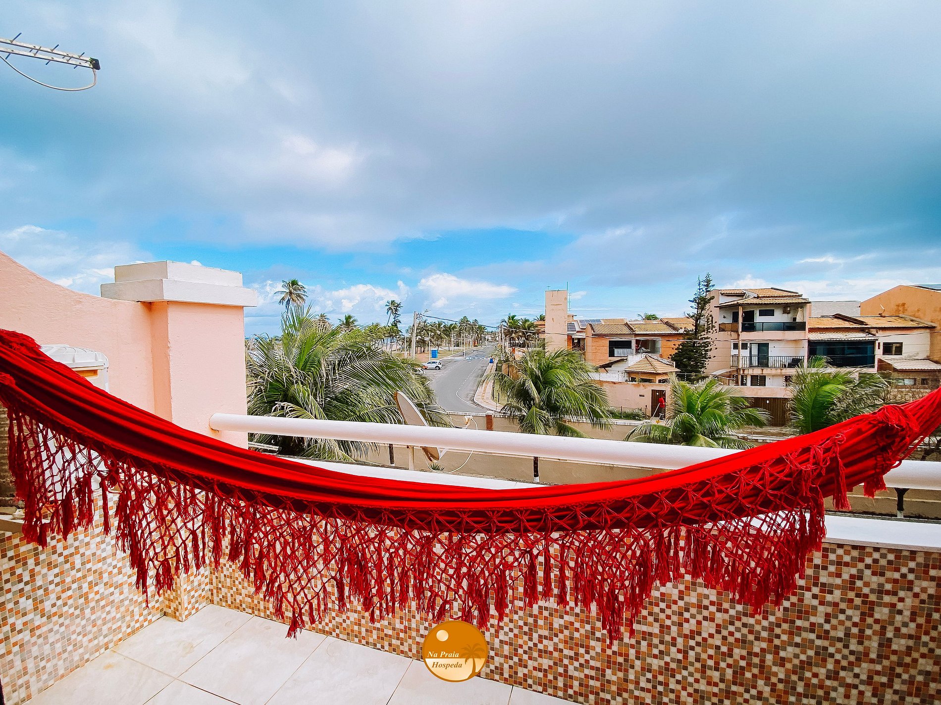 Do alto do nosso triplex, a rede embala no ritmo do vento, virando cenário de histórias em família ao som das ondas e à vista azul do mar.