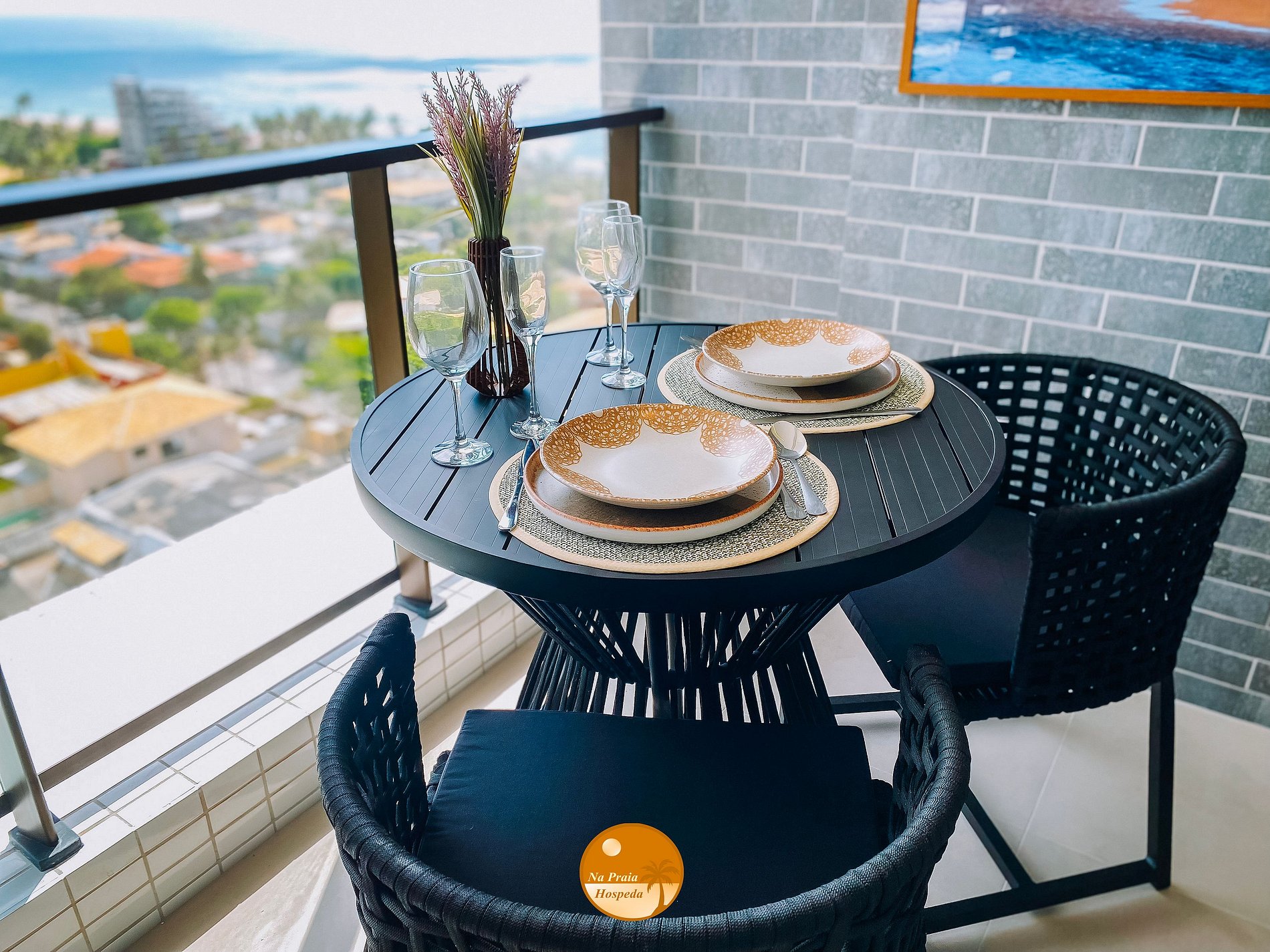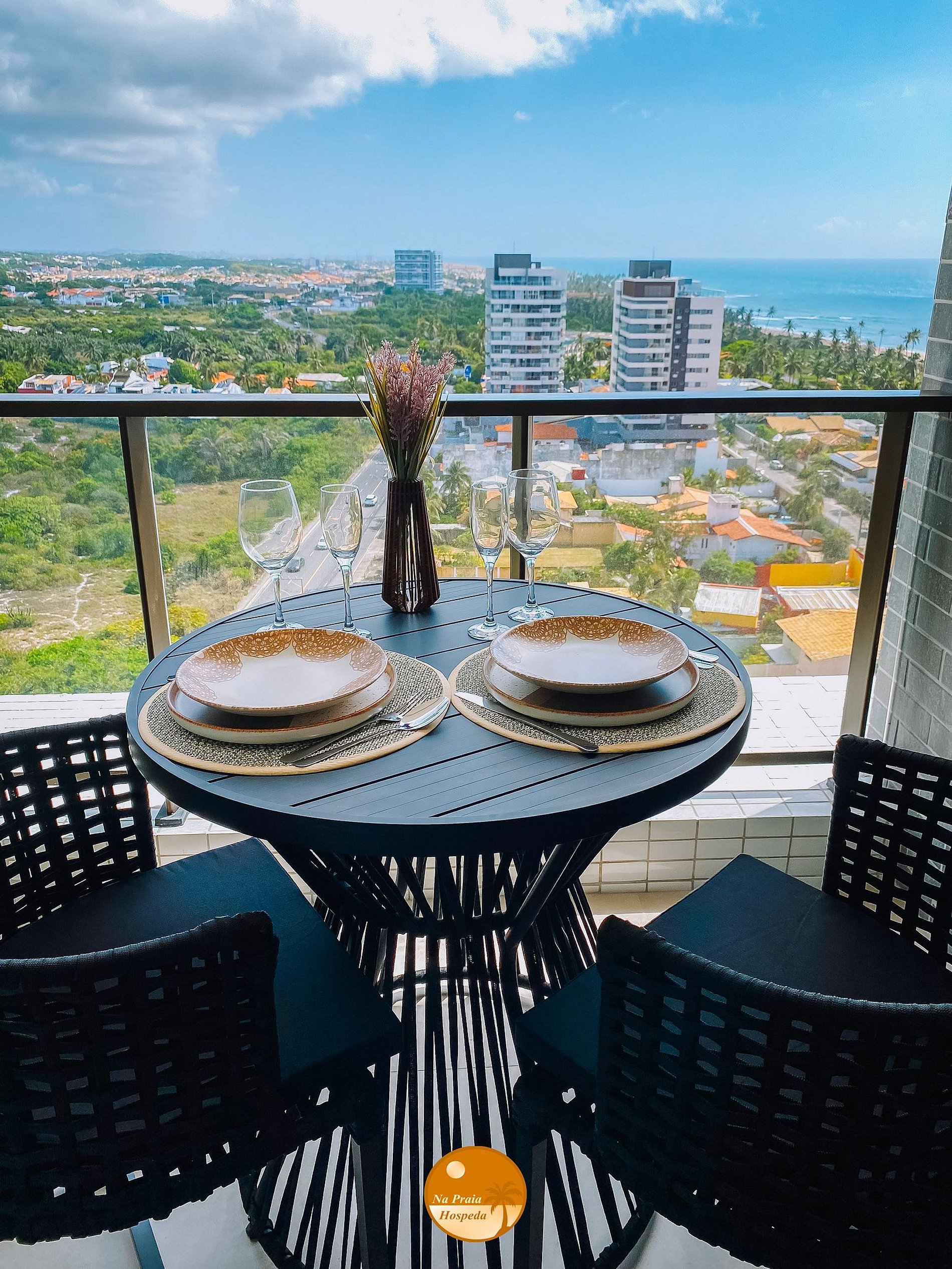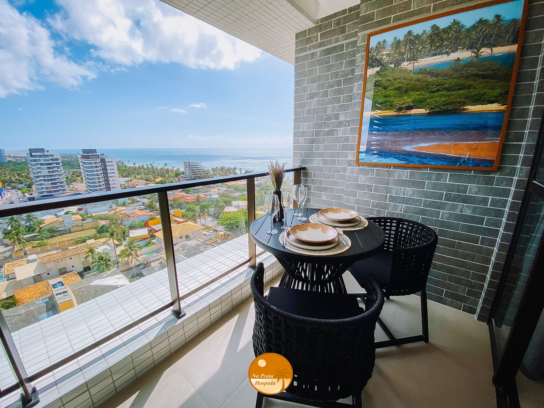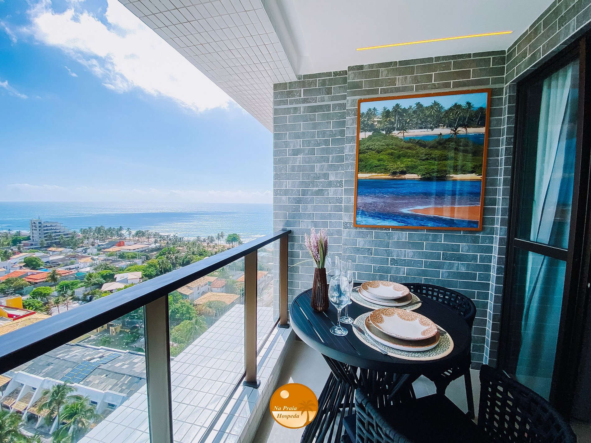 - Varanda com vista lateral para a cidade e para o mar;