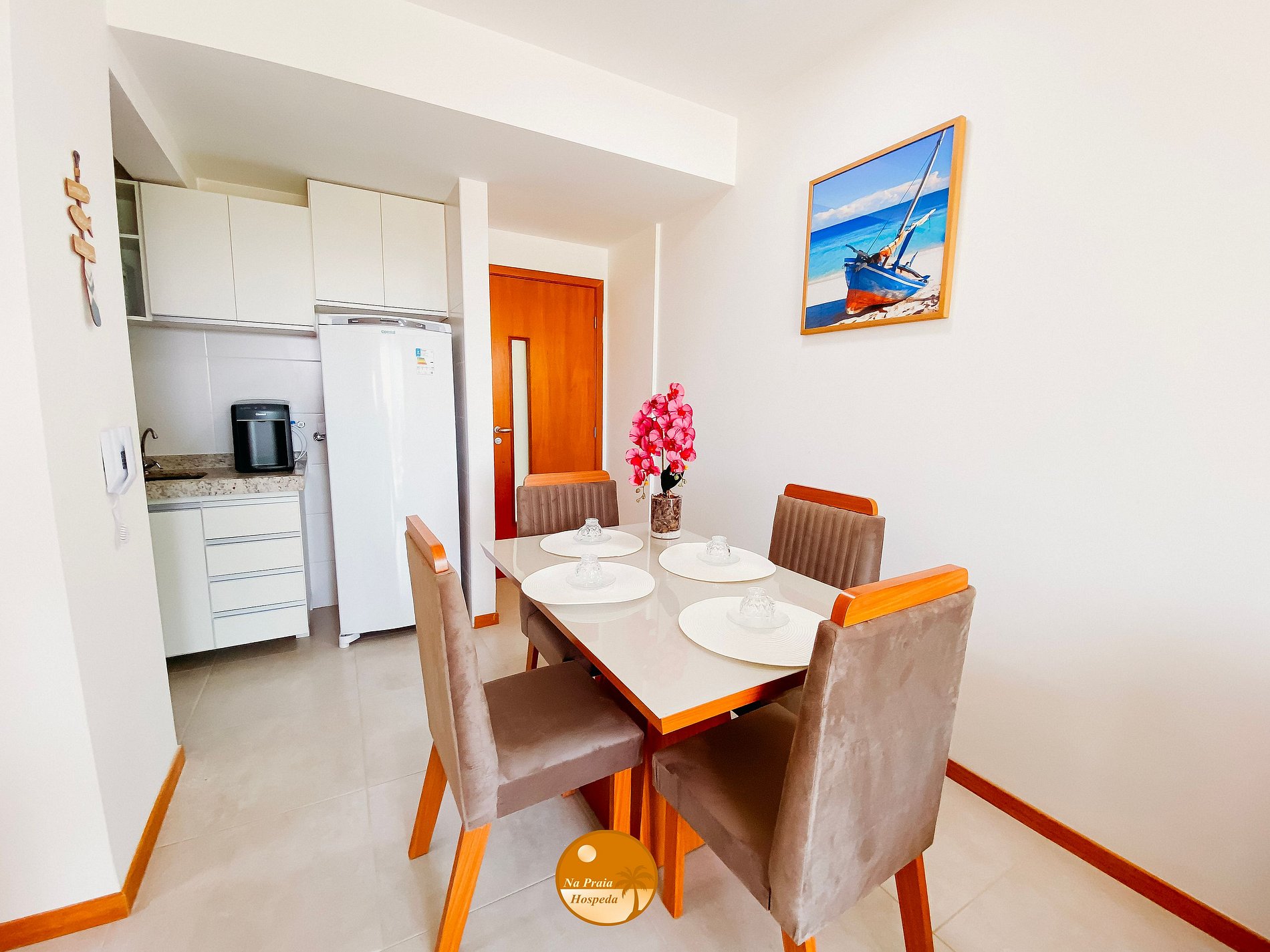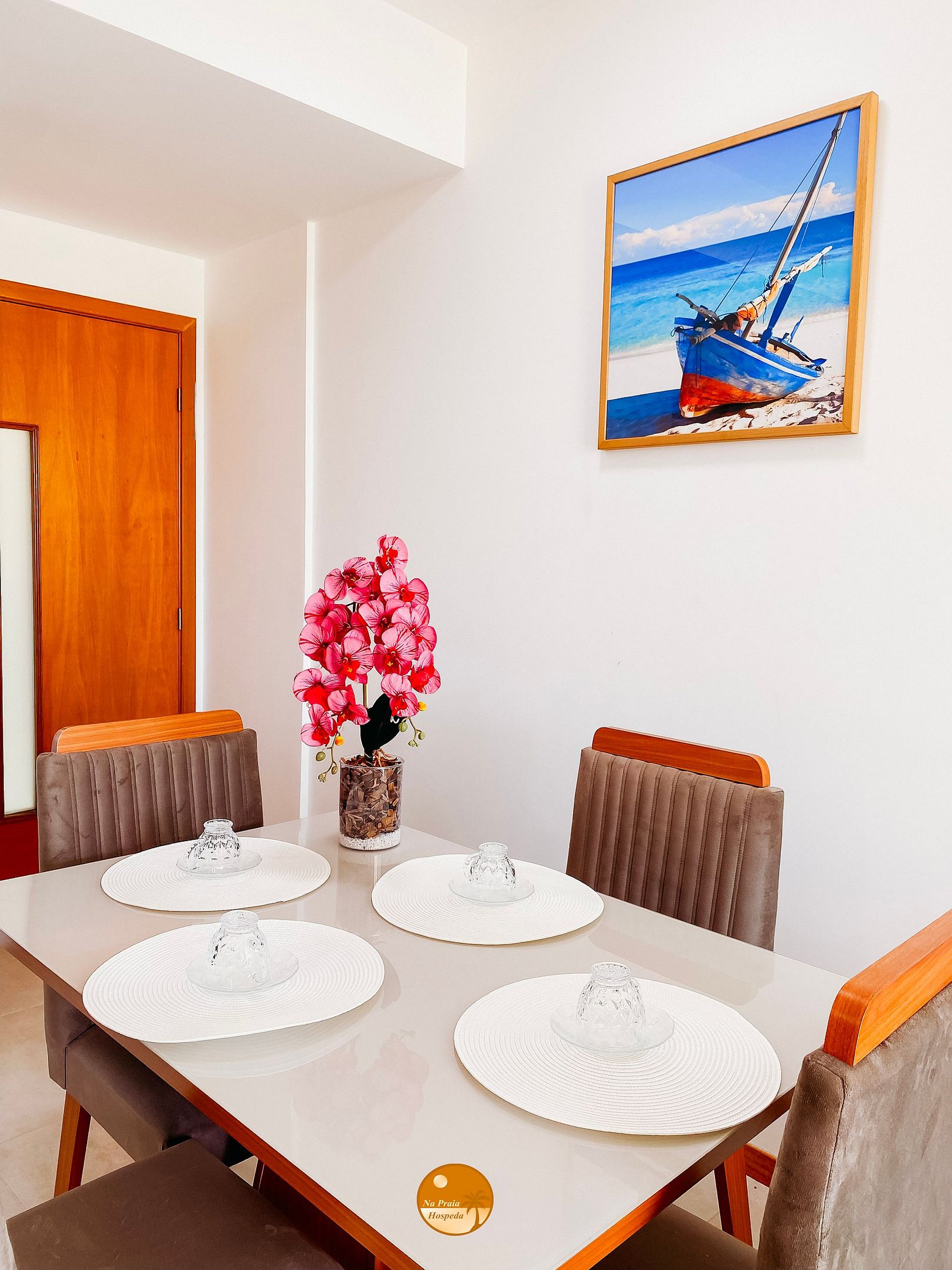 A poucos passos da areia, este apartamento com decoração praiana convida você a viver dias leves e cheios de charme. A varanda com rede é o lugar perfeito para relaxar, enquanto o sol se despede atrás das dunas em um espetáculo diário de cores.