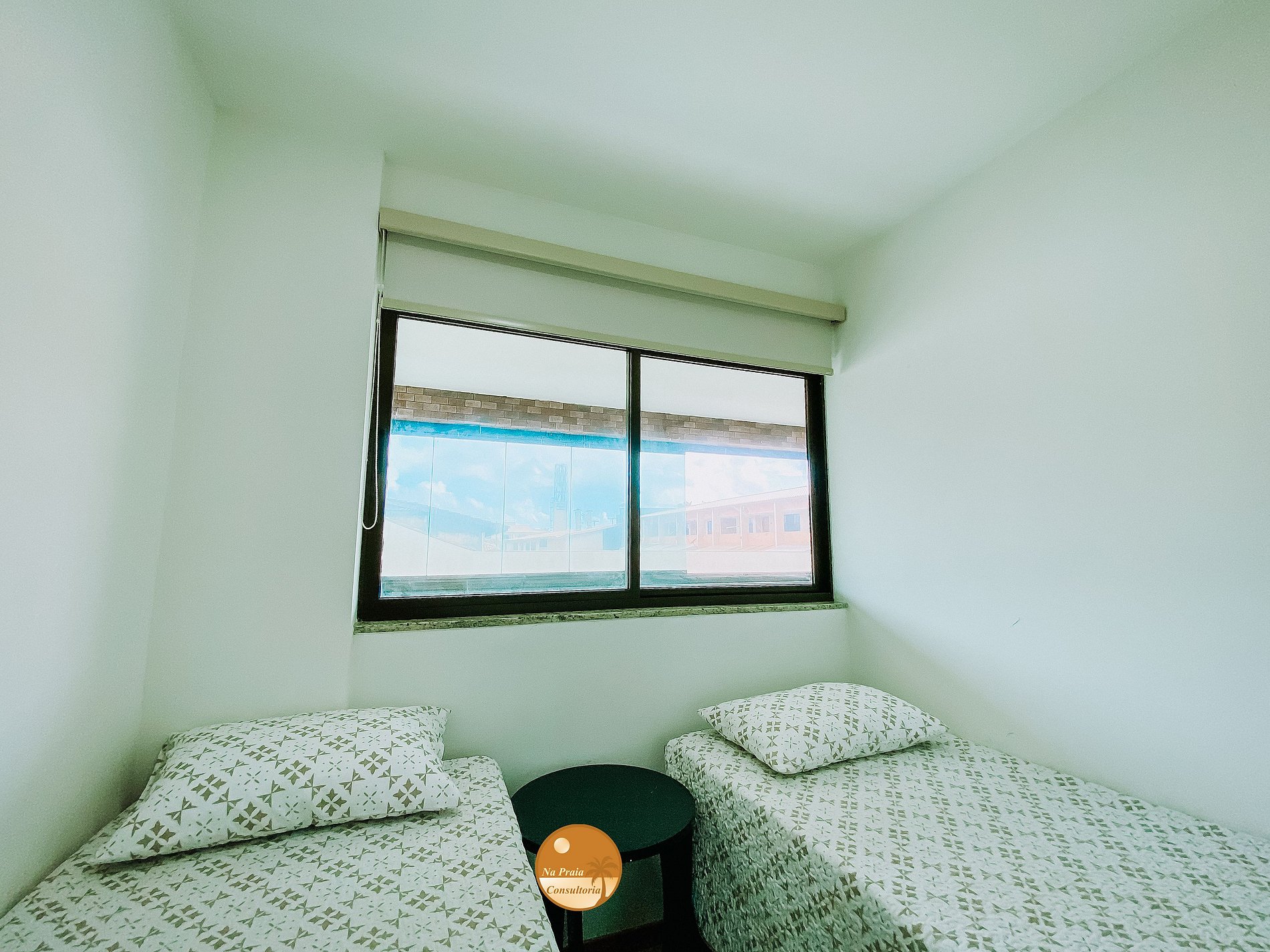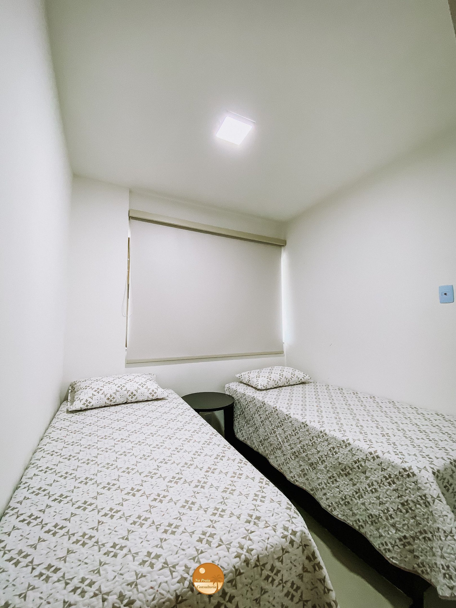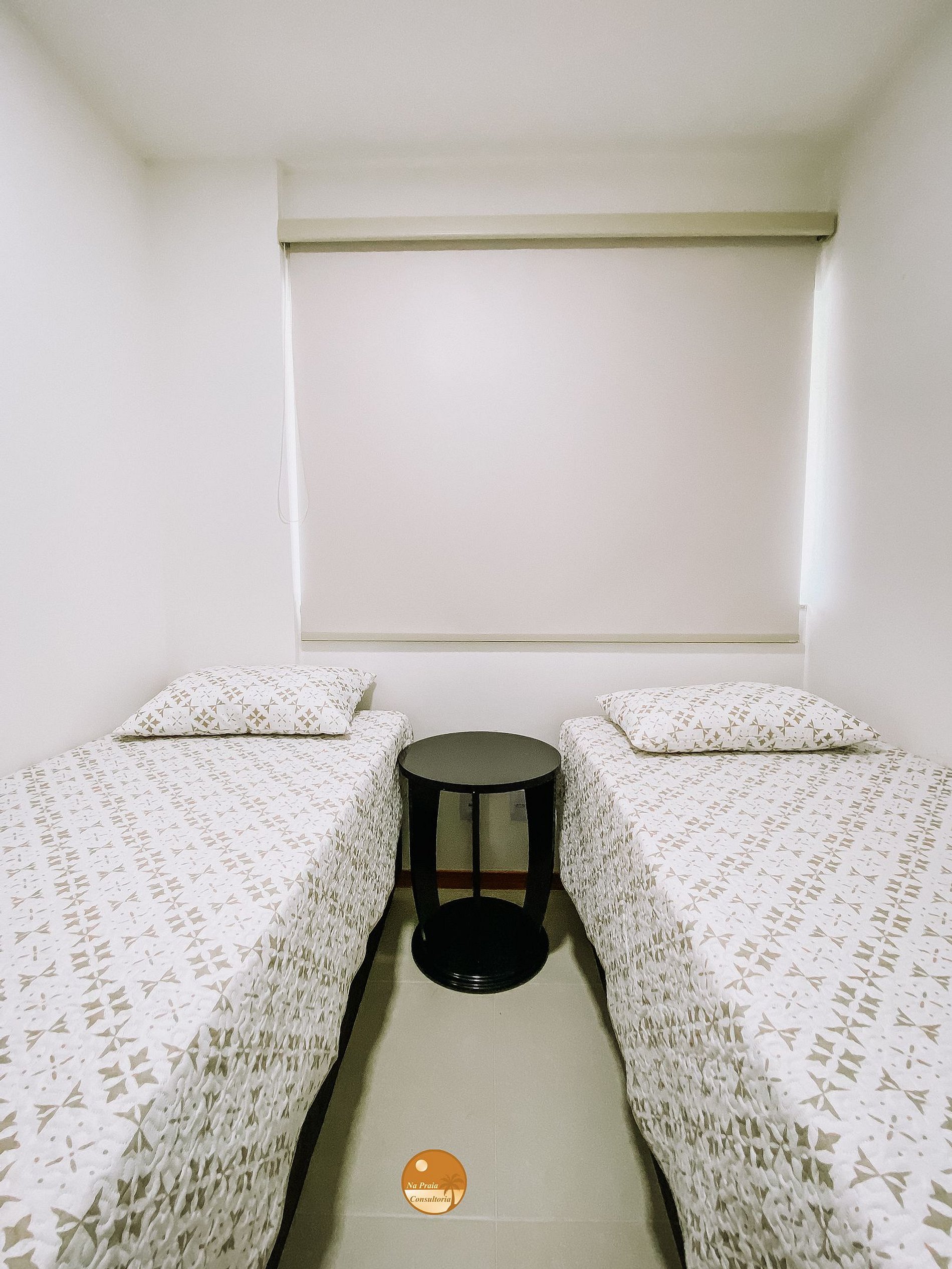 2 Camas de solteiro, Split, mesa de cabeceira, guarda roupas e continas blackout.