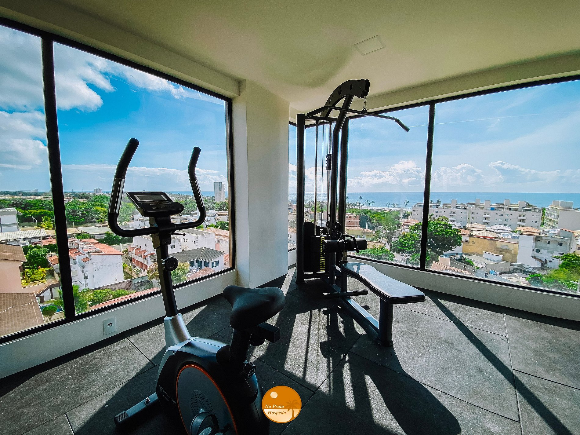 - Varanda com vista lateral para a cidade e para o mar;
