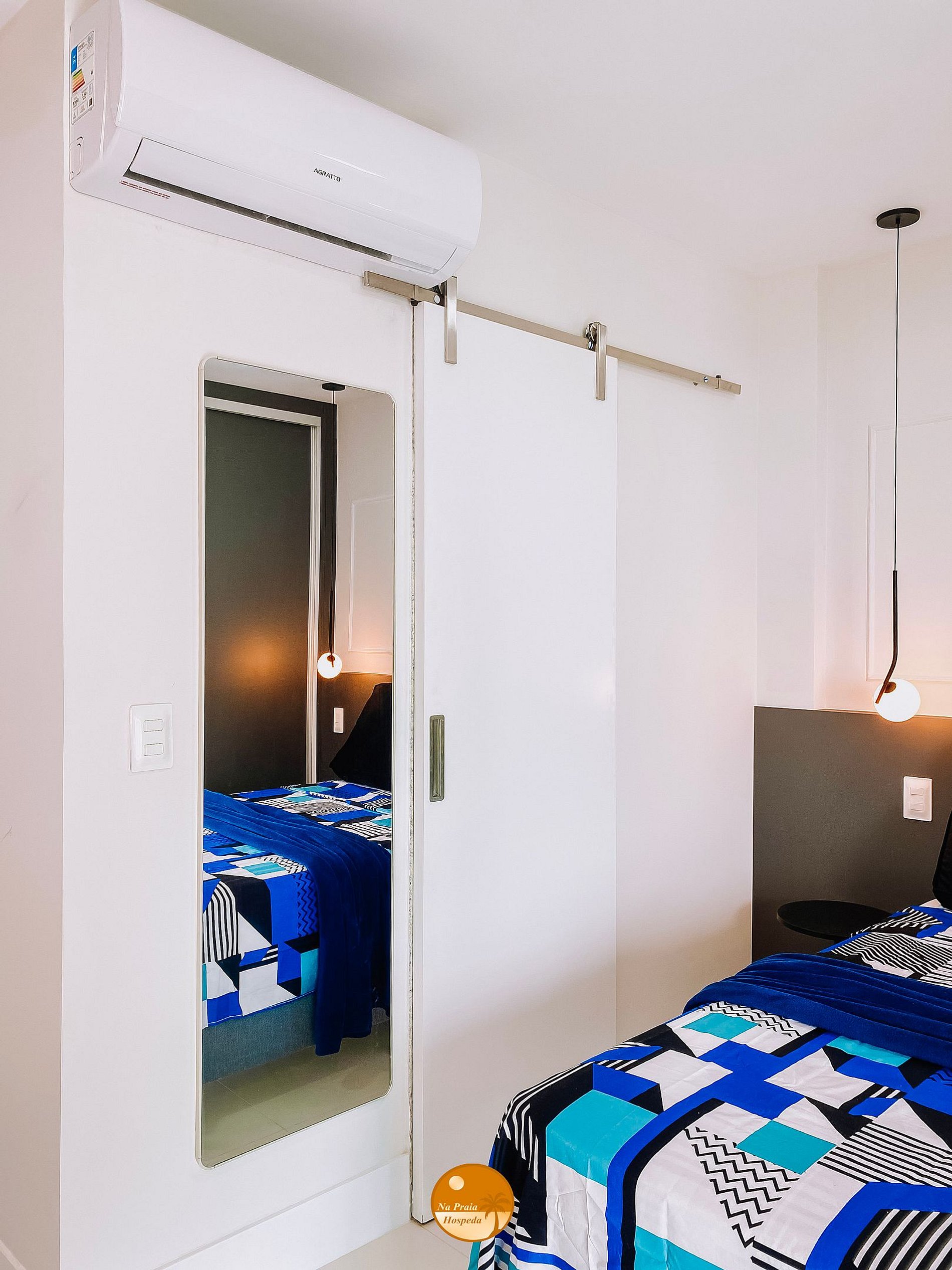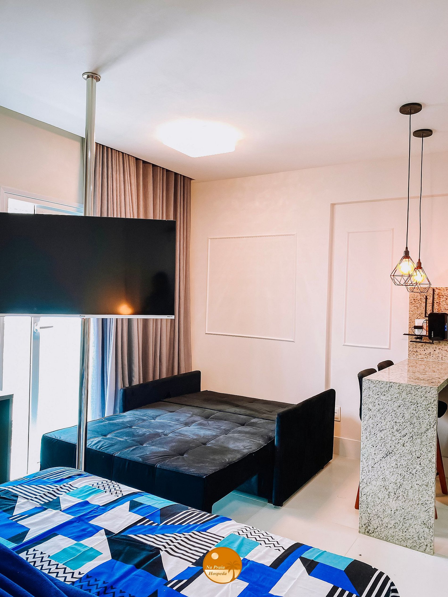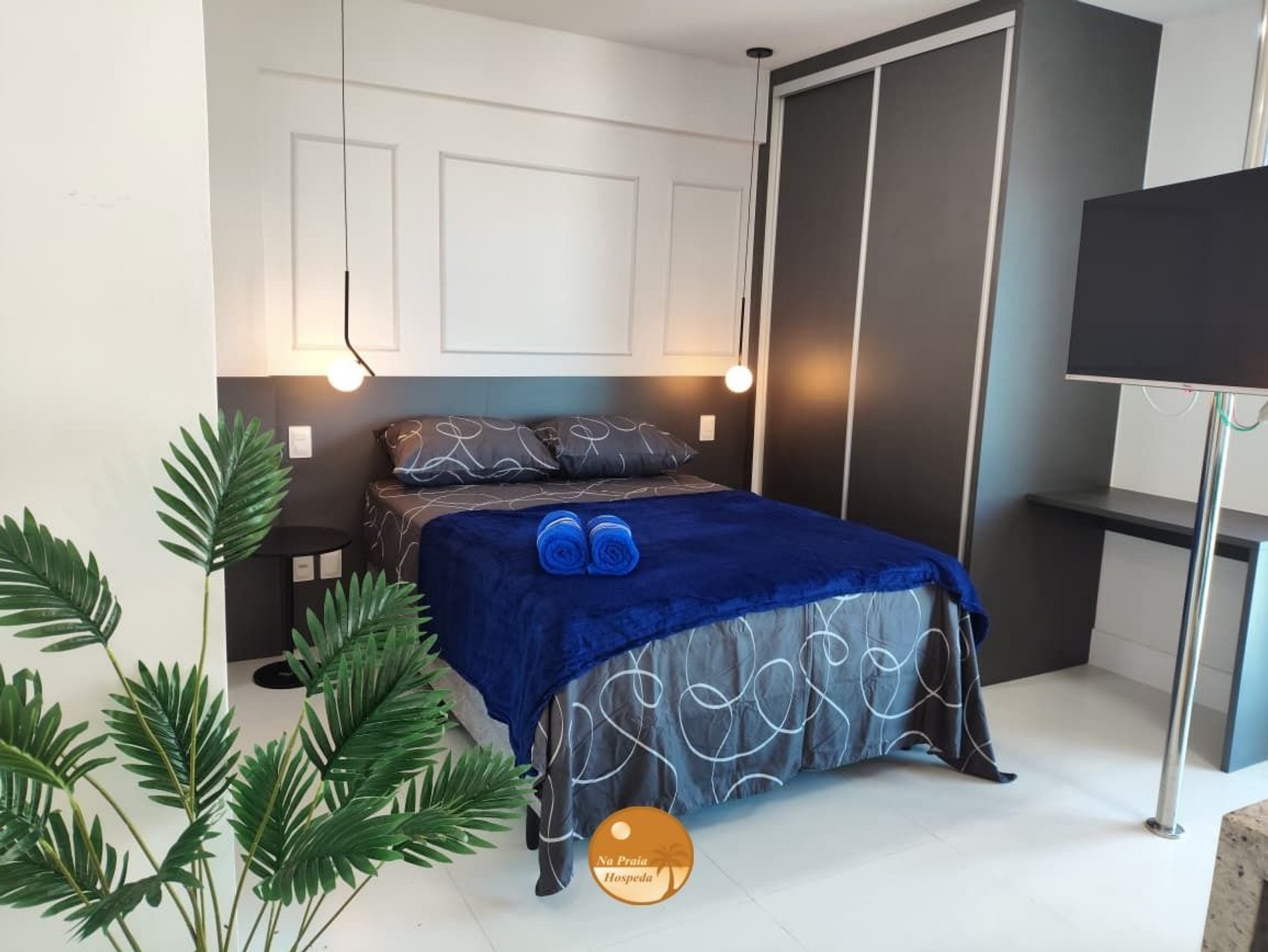 - 1 cama casal, 1 sofá cama de casal, Smart Tv, armário, ar-condicionado, cortina blackout, varanda com vista mar e wi-fi.