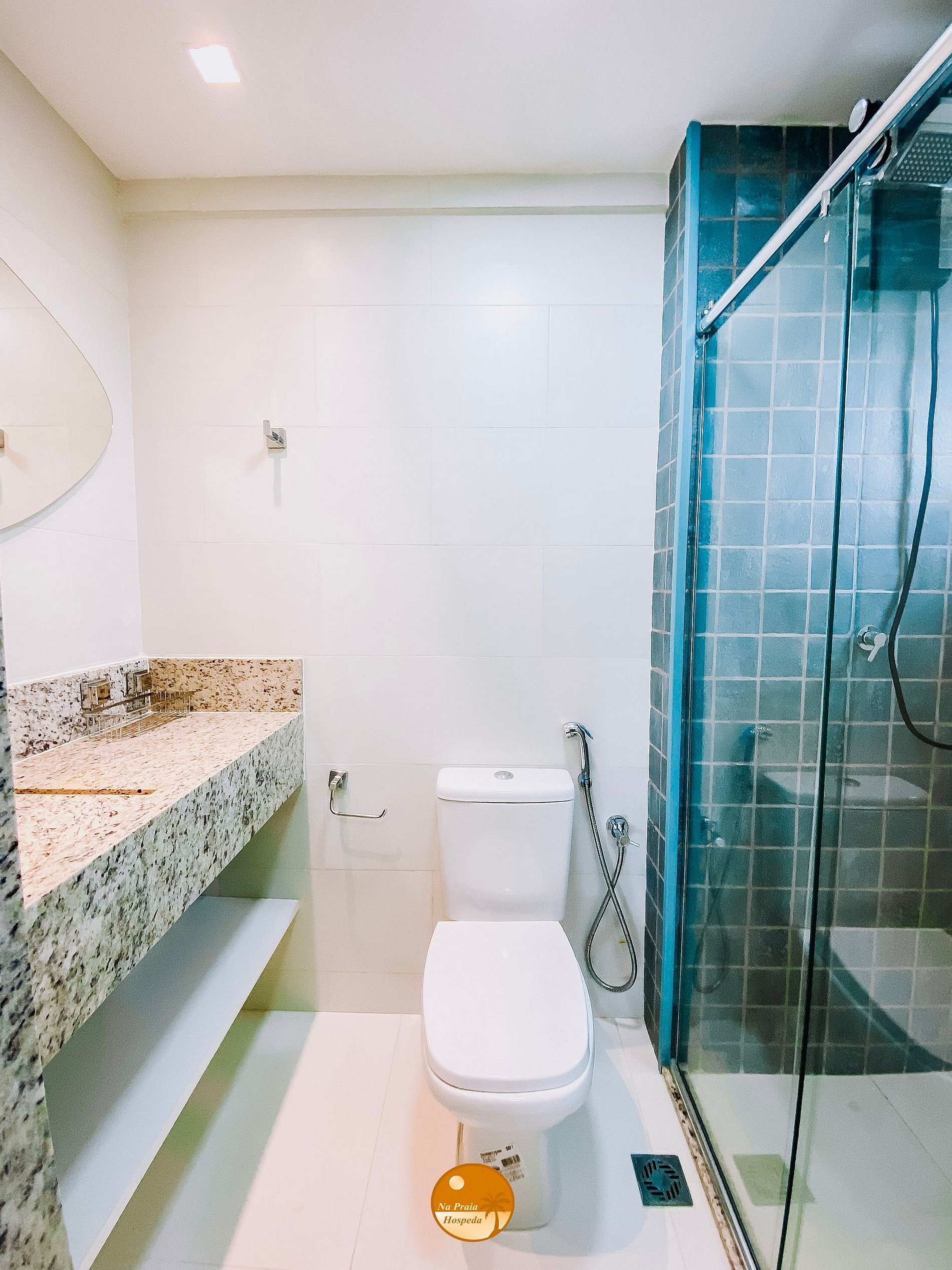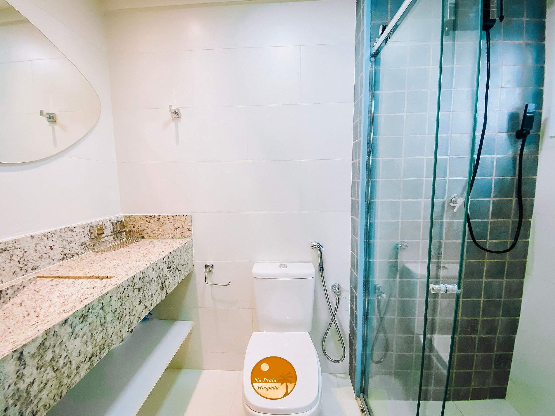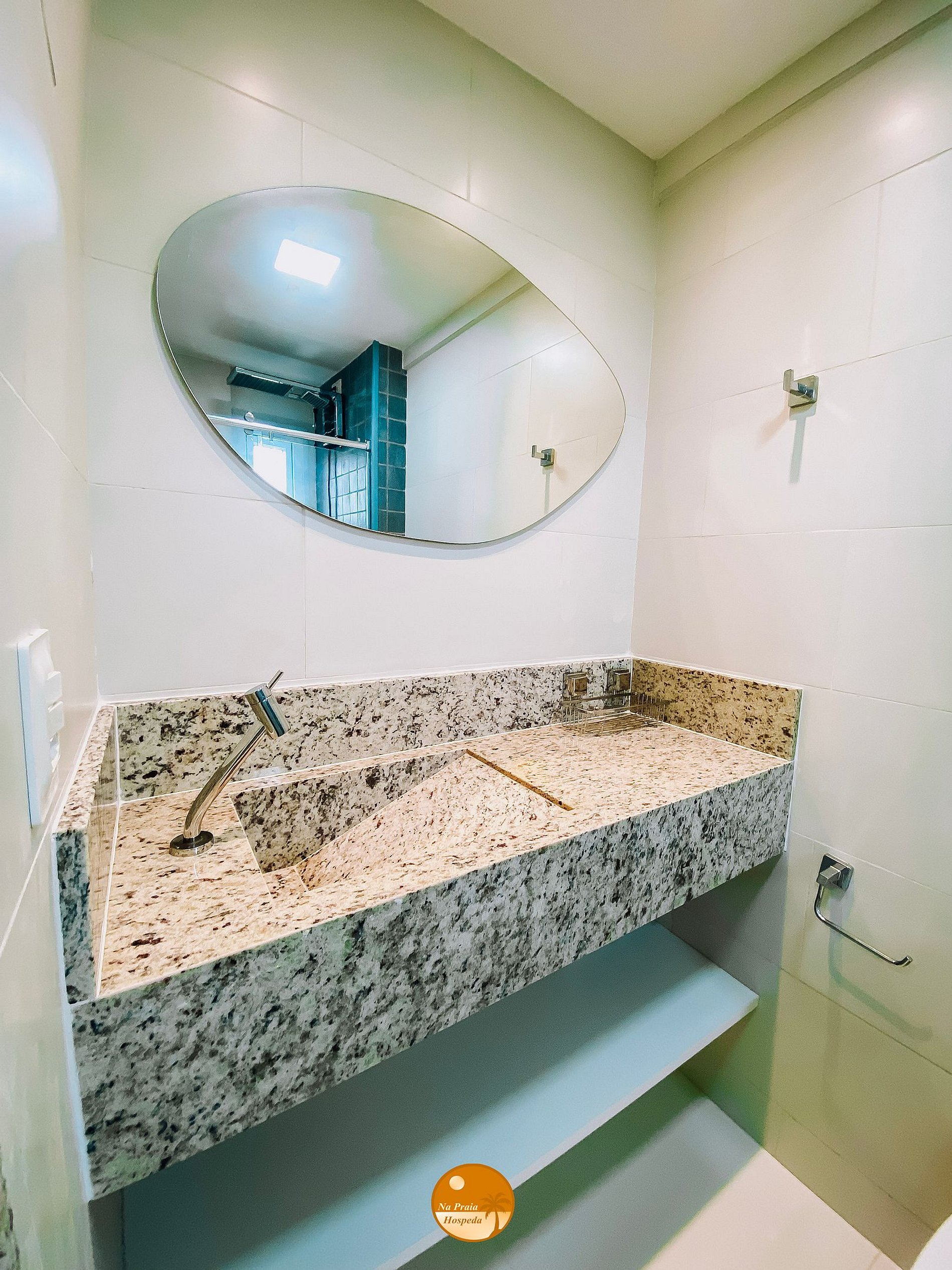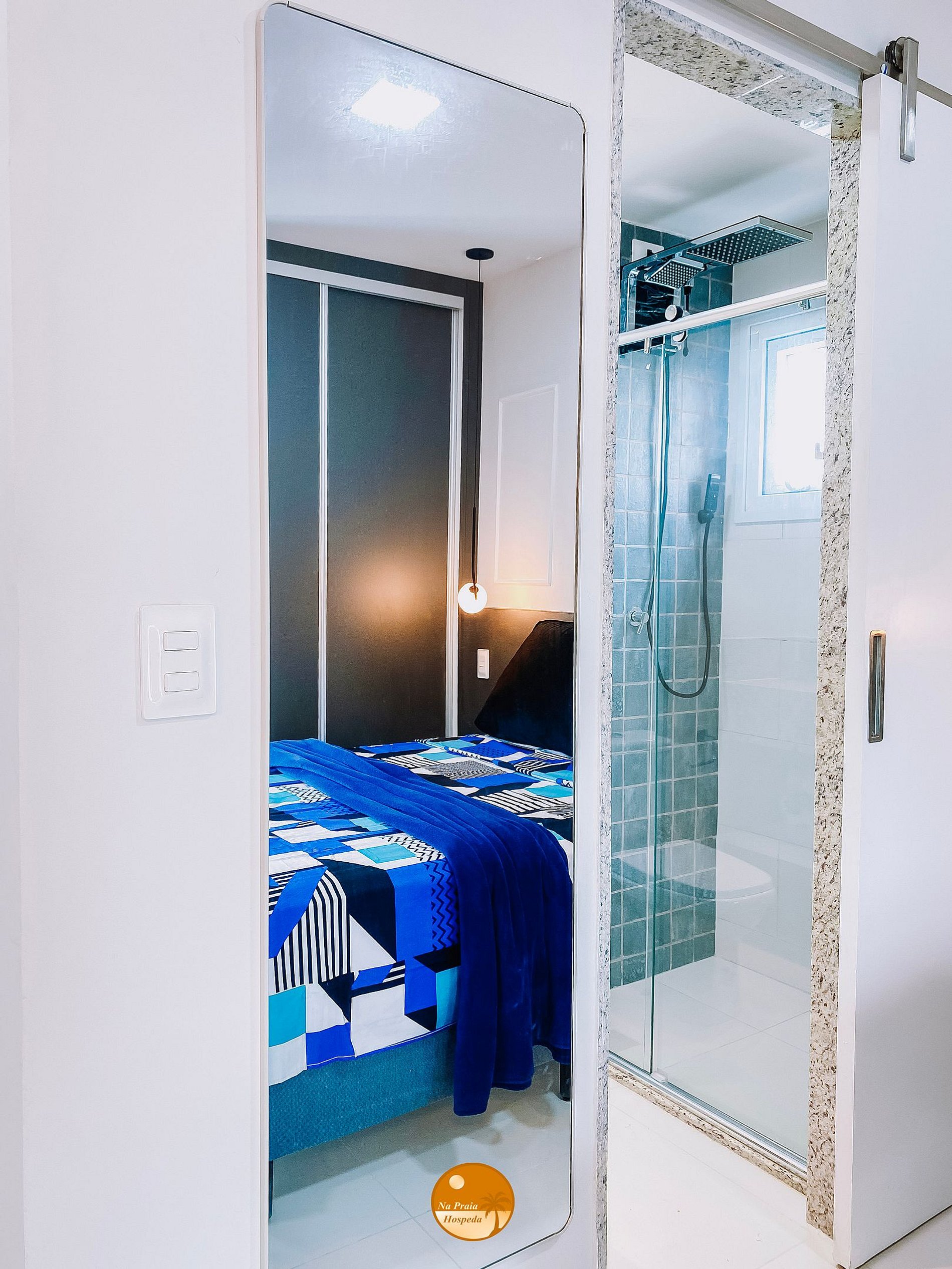 - 1 cama casal, 1 sofá cama de casal, Smart Tv, armário, ar-condicionado, cortina blackout, varanda com vista mar e wi-fi.