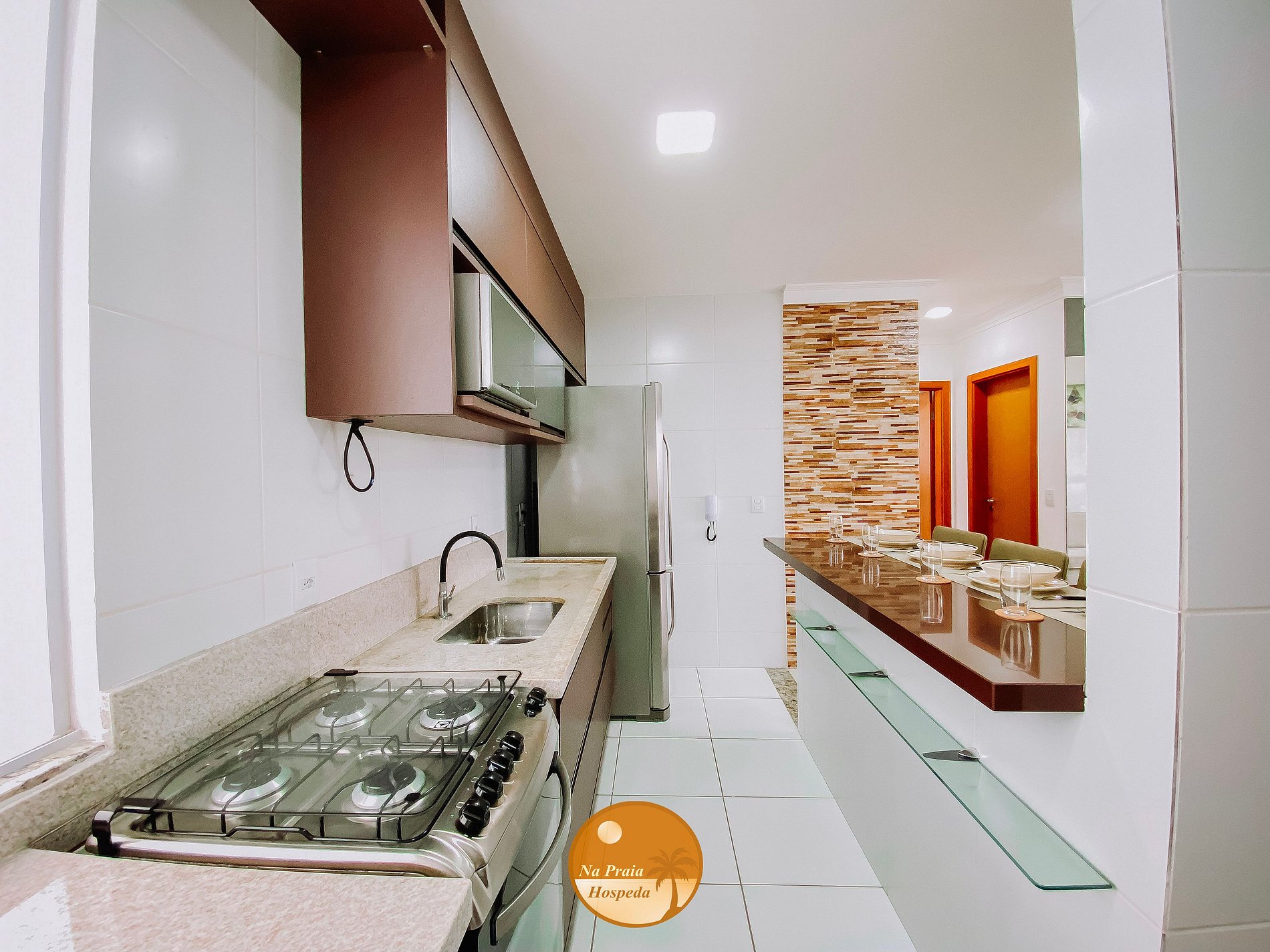 * Cozinha: Totalmente equipada, fogão, geladeira, cafeteira, microondas, torradeira, liquidificador, espremedor de frutas.