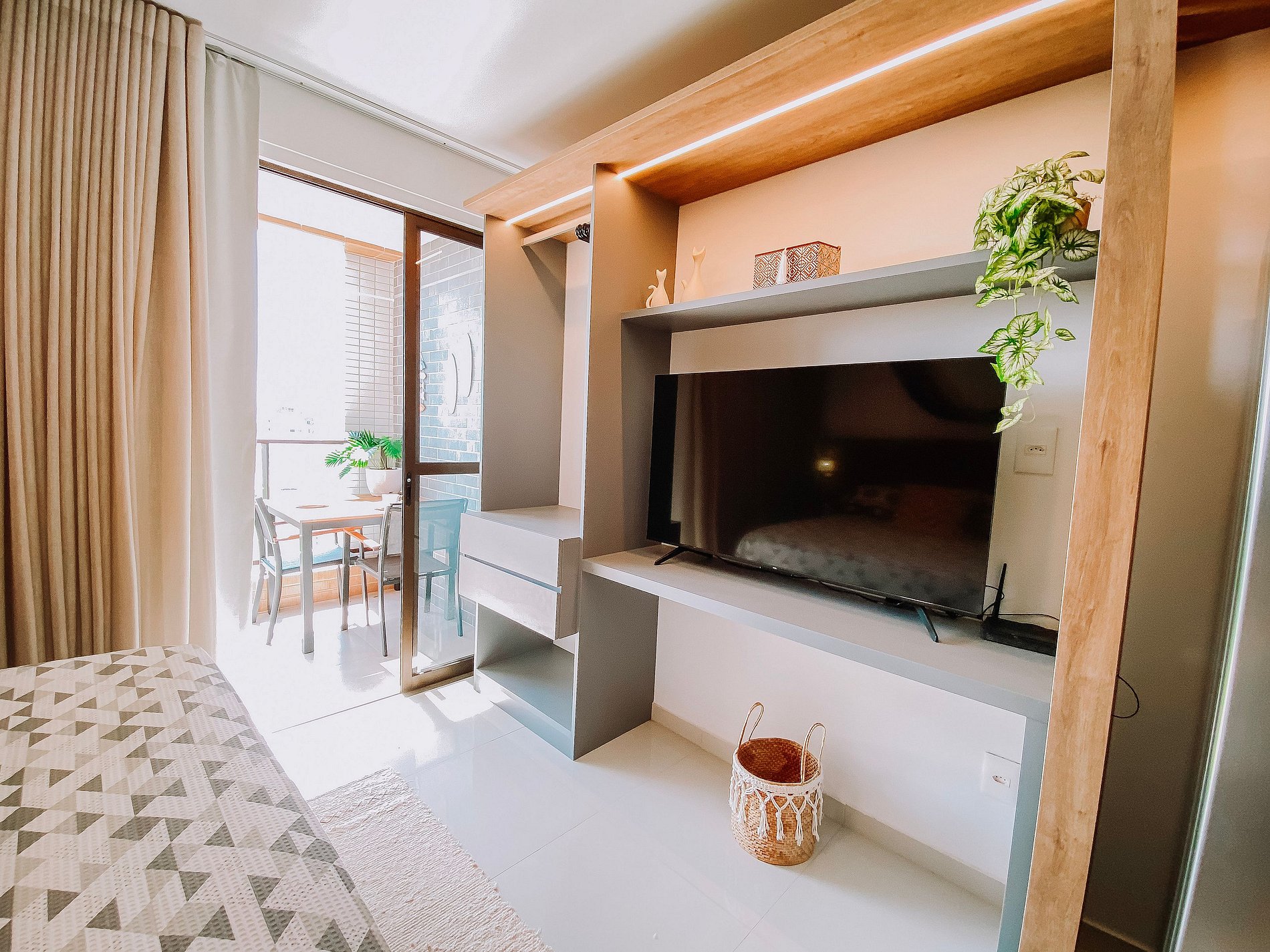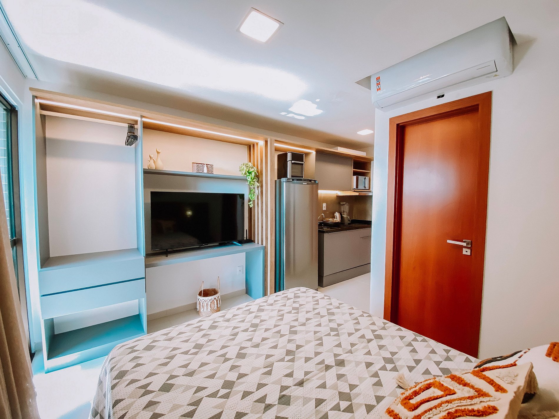 - 1 cama casal, 1 colchão de solteiro adicional, Smart Tv (logins e senhas não são fornecidos), armário, ar-condicionado, varanda com vista mar lateral e wi-fi.