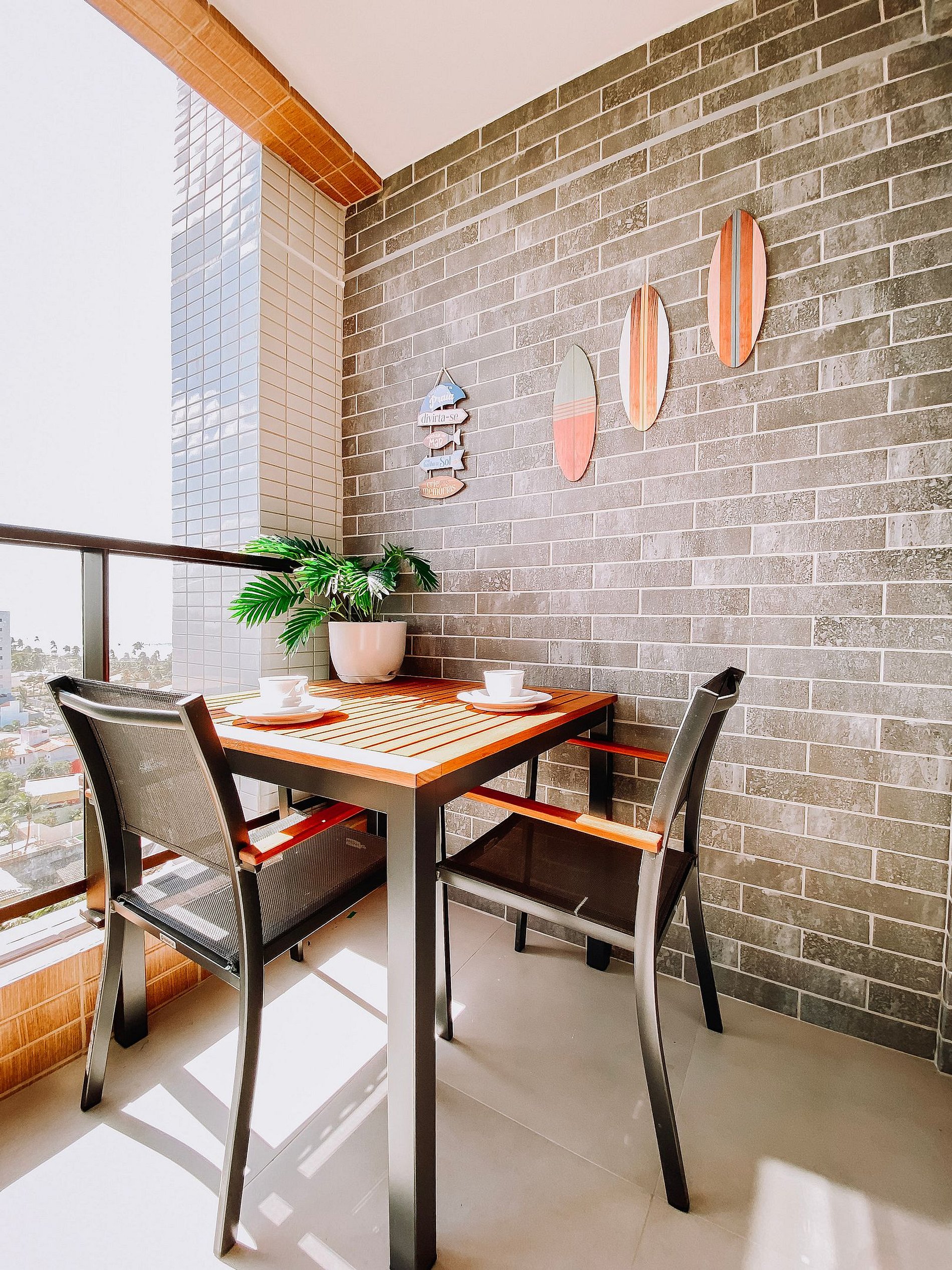 - Espaço interno e externo para refeições com mesa e cadeiras;
