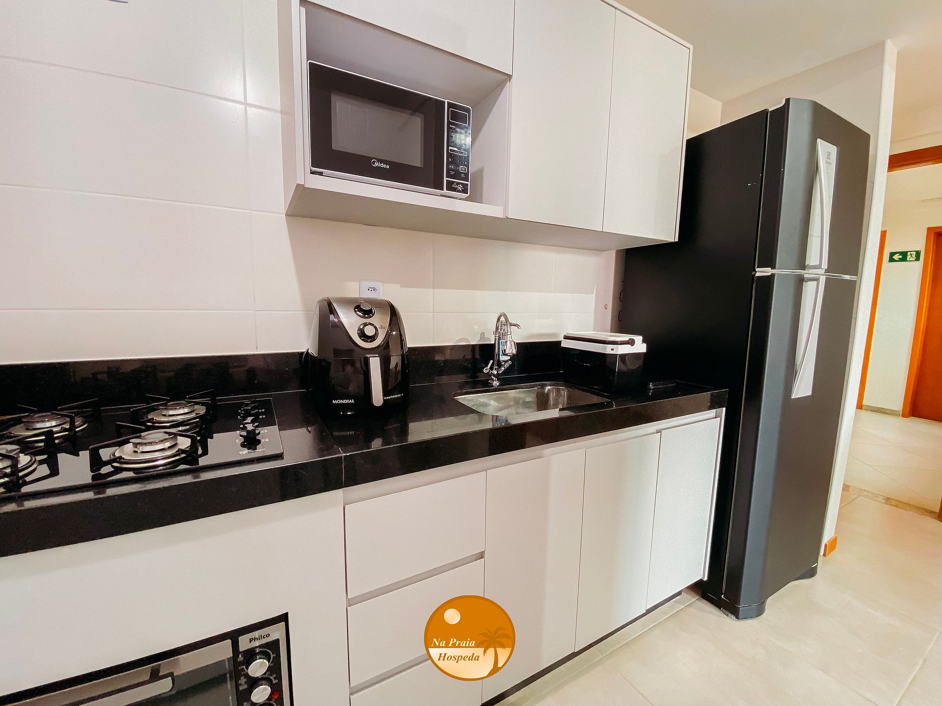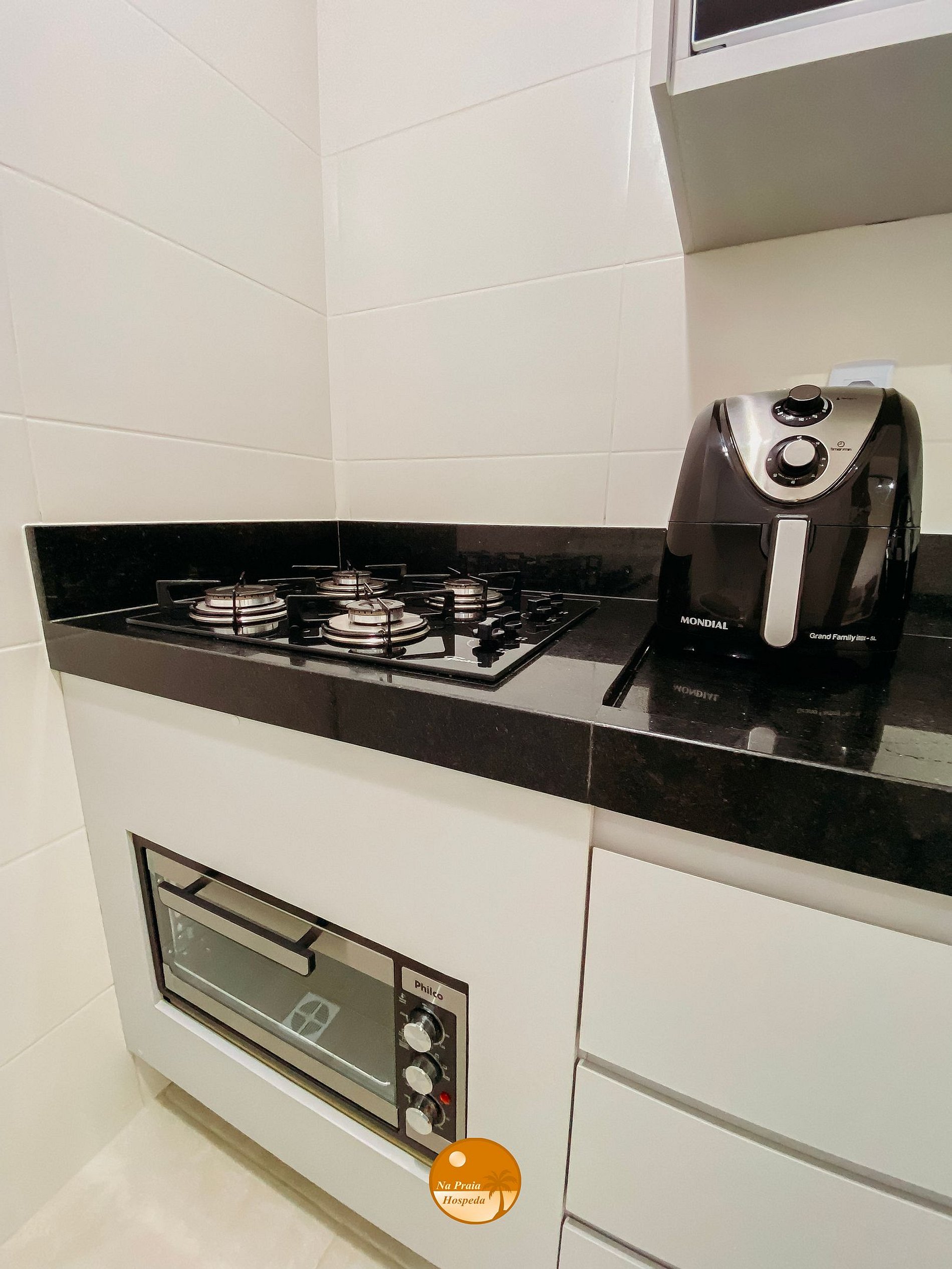 Totalmente equipada, Microondas, Liquidificador, Air Fryer, sanduicheira, Geladeira com congelador, Fogão com 4 bocas, Forno e Filtro de água.