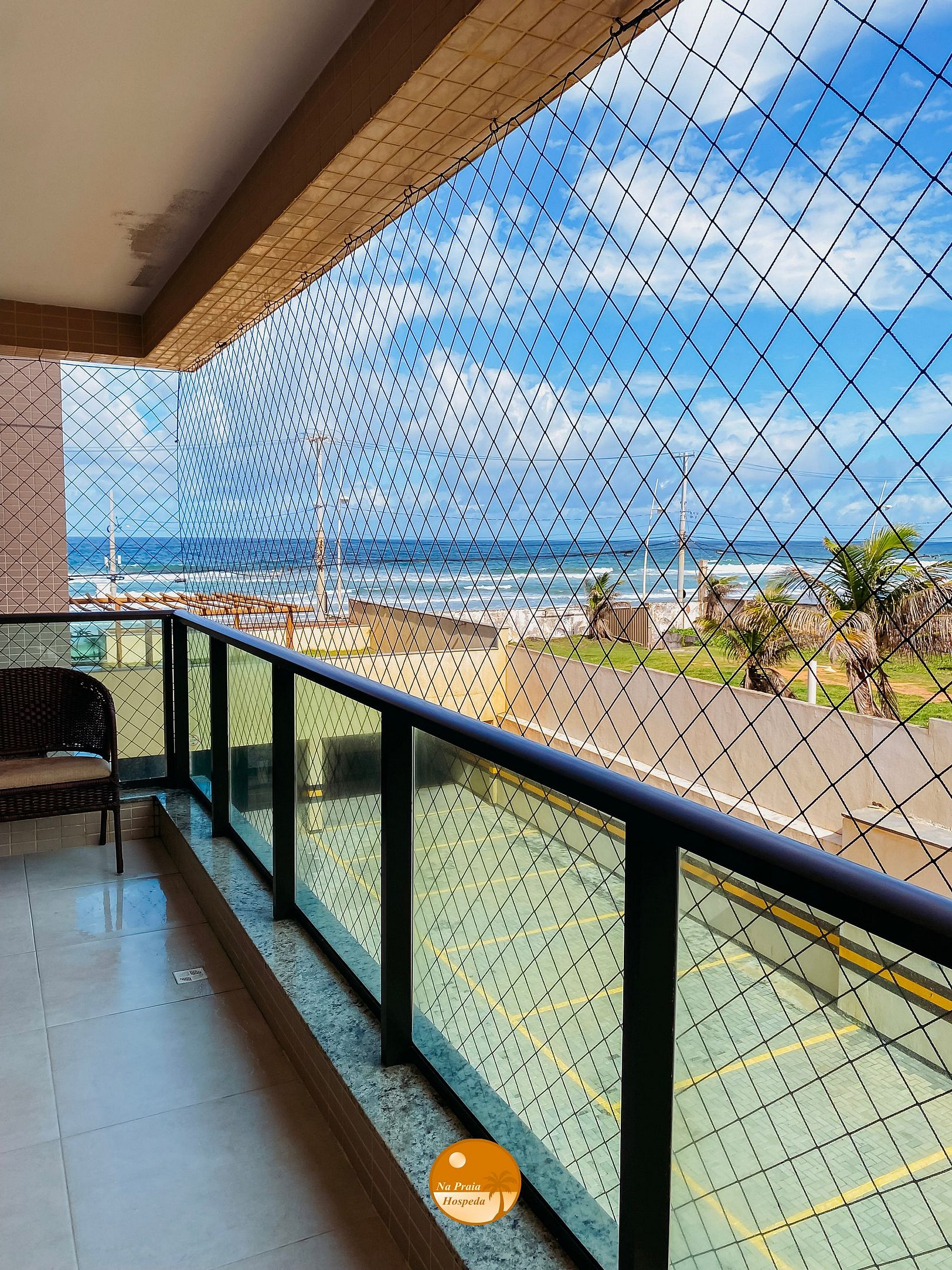 Na varanda há rede de proteção, garantindo tranquilidade para famílias com pequenos e uma estrutura completa no condomínio:
