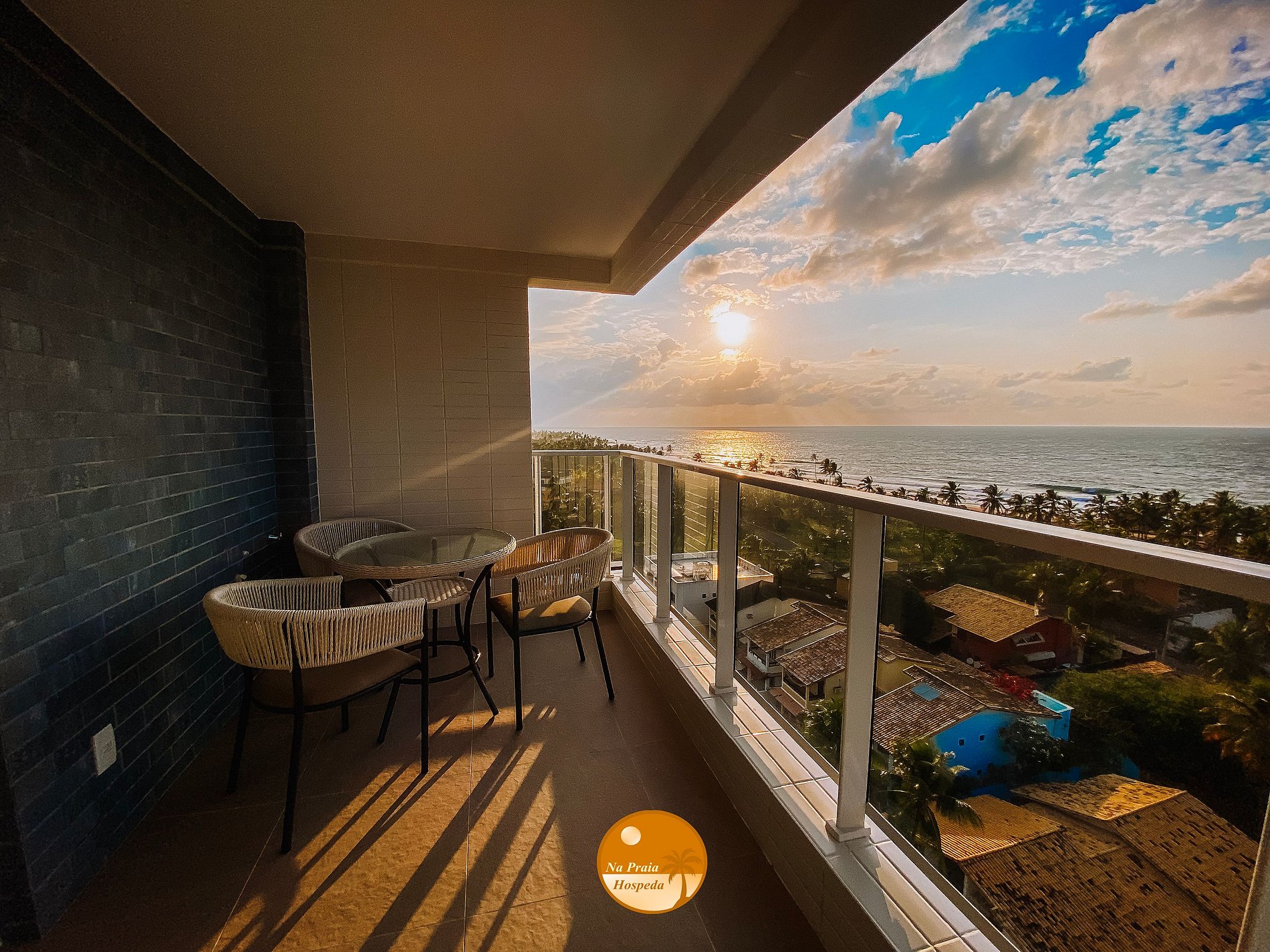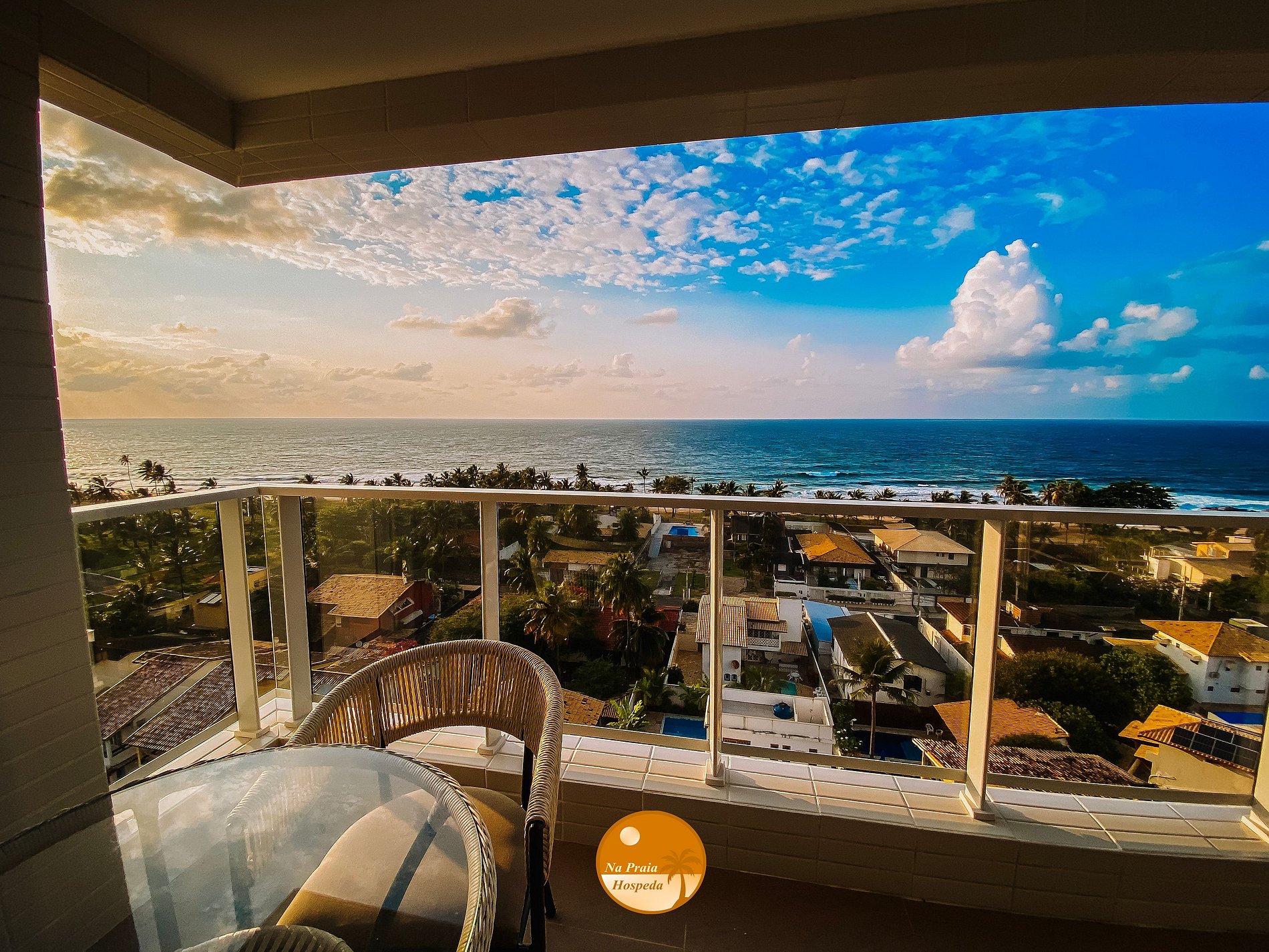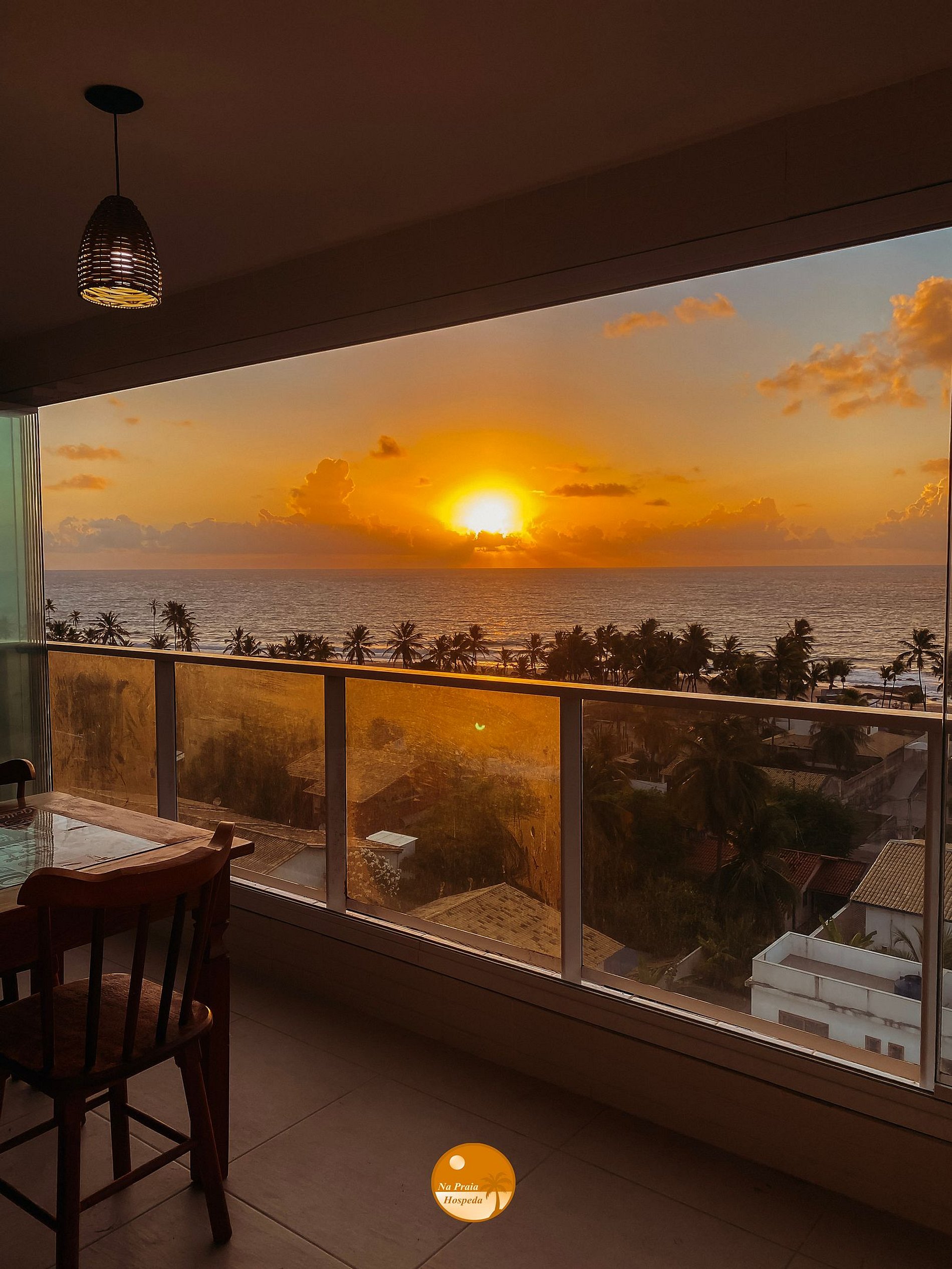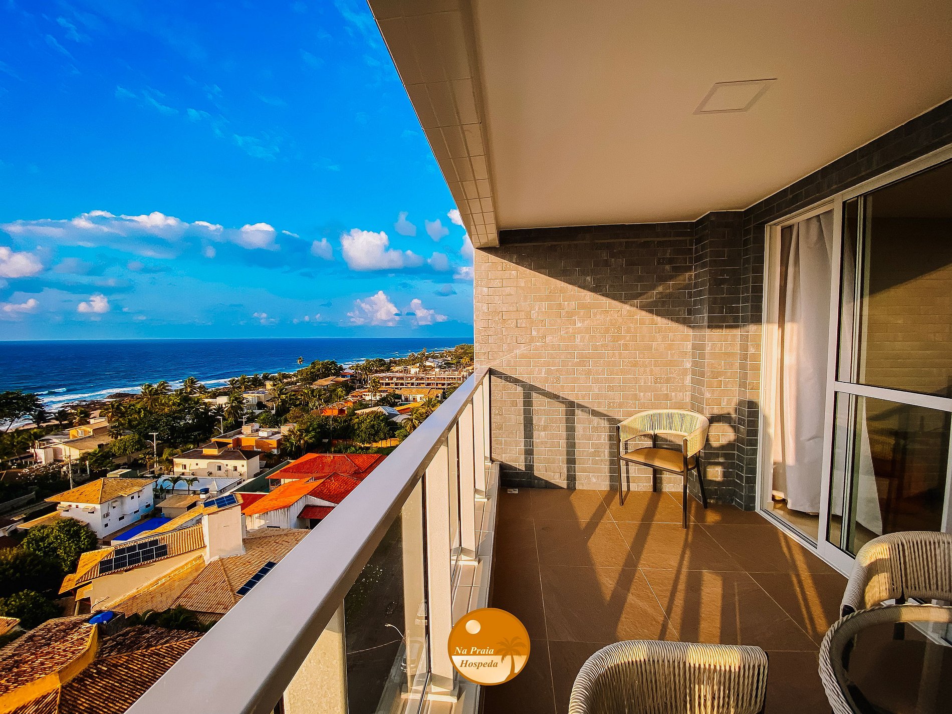 Da varanda, você ouve o som relaxante das ondas e sente a brisa fresca tocando o rosto.
