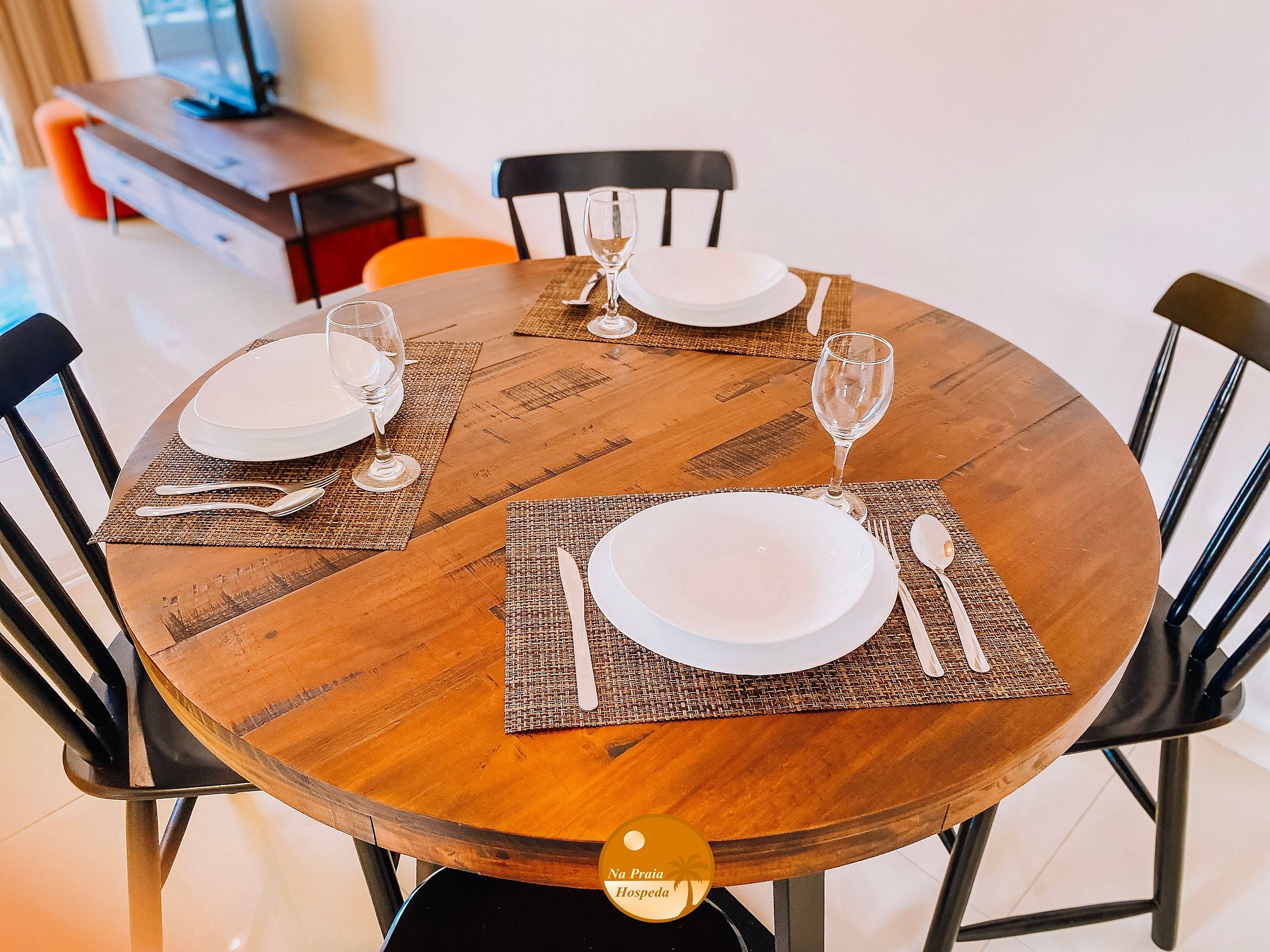 Mesa com 4 Cadeiras e Vista Frontal para o Mar.