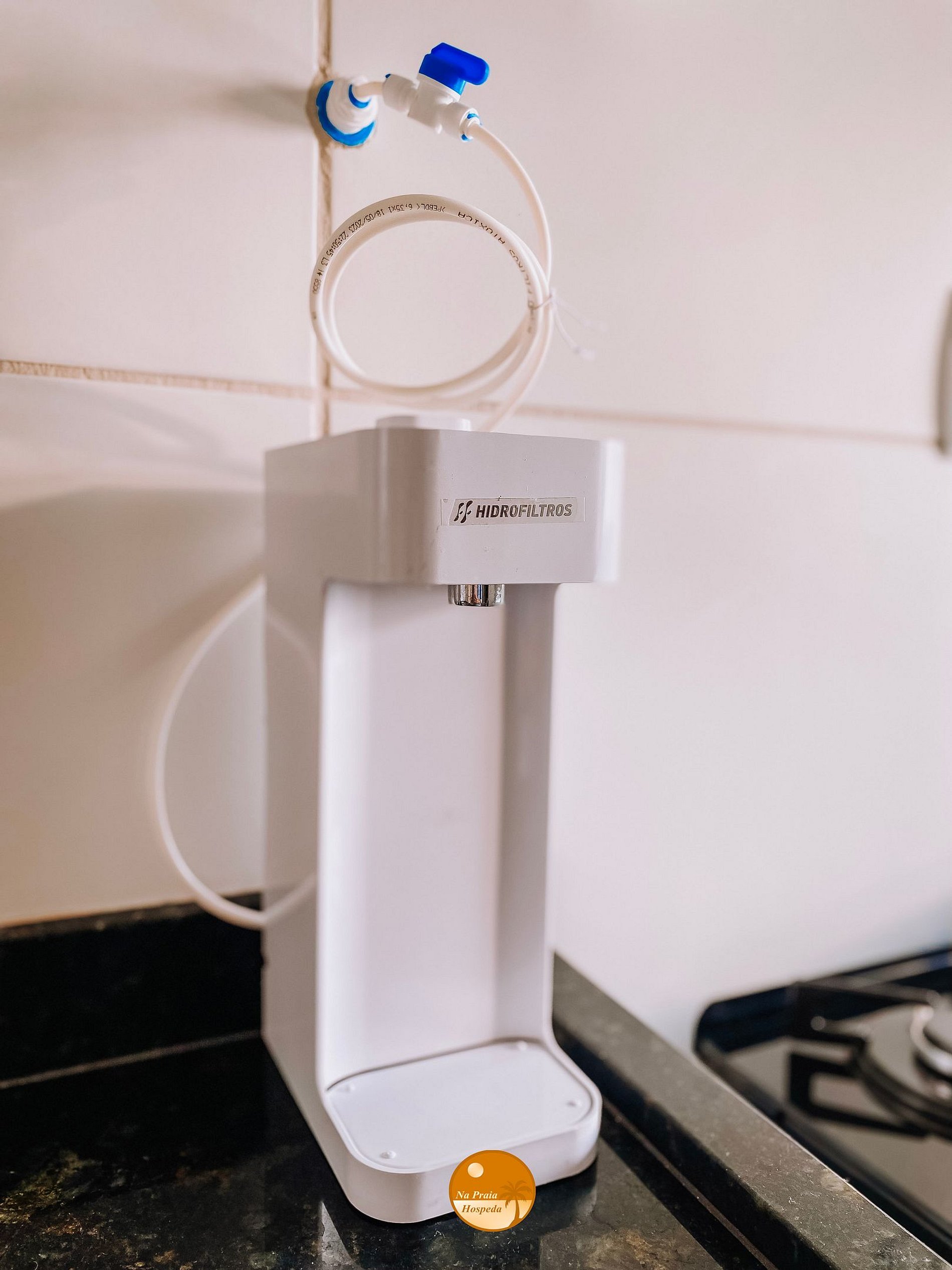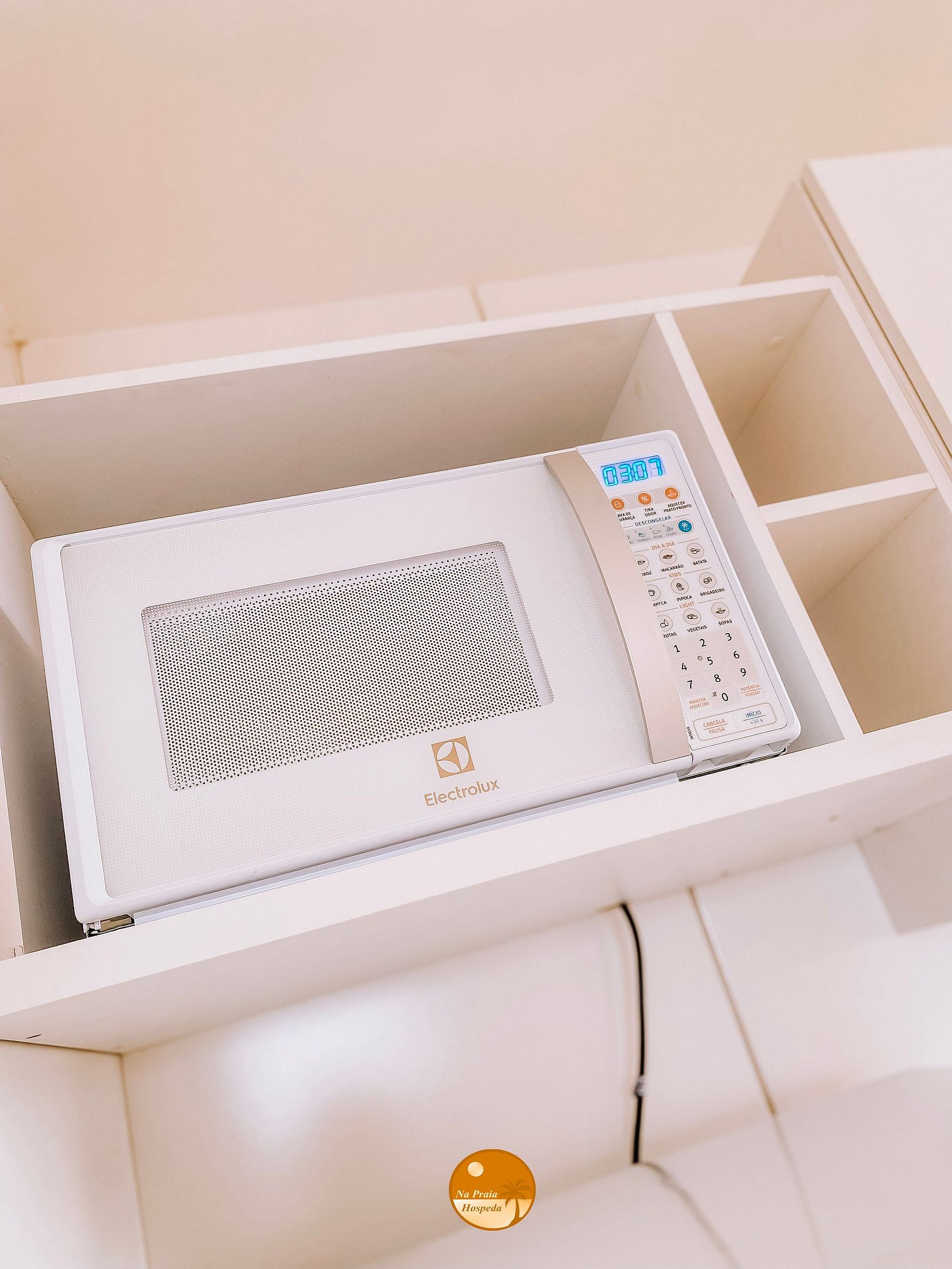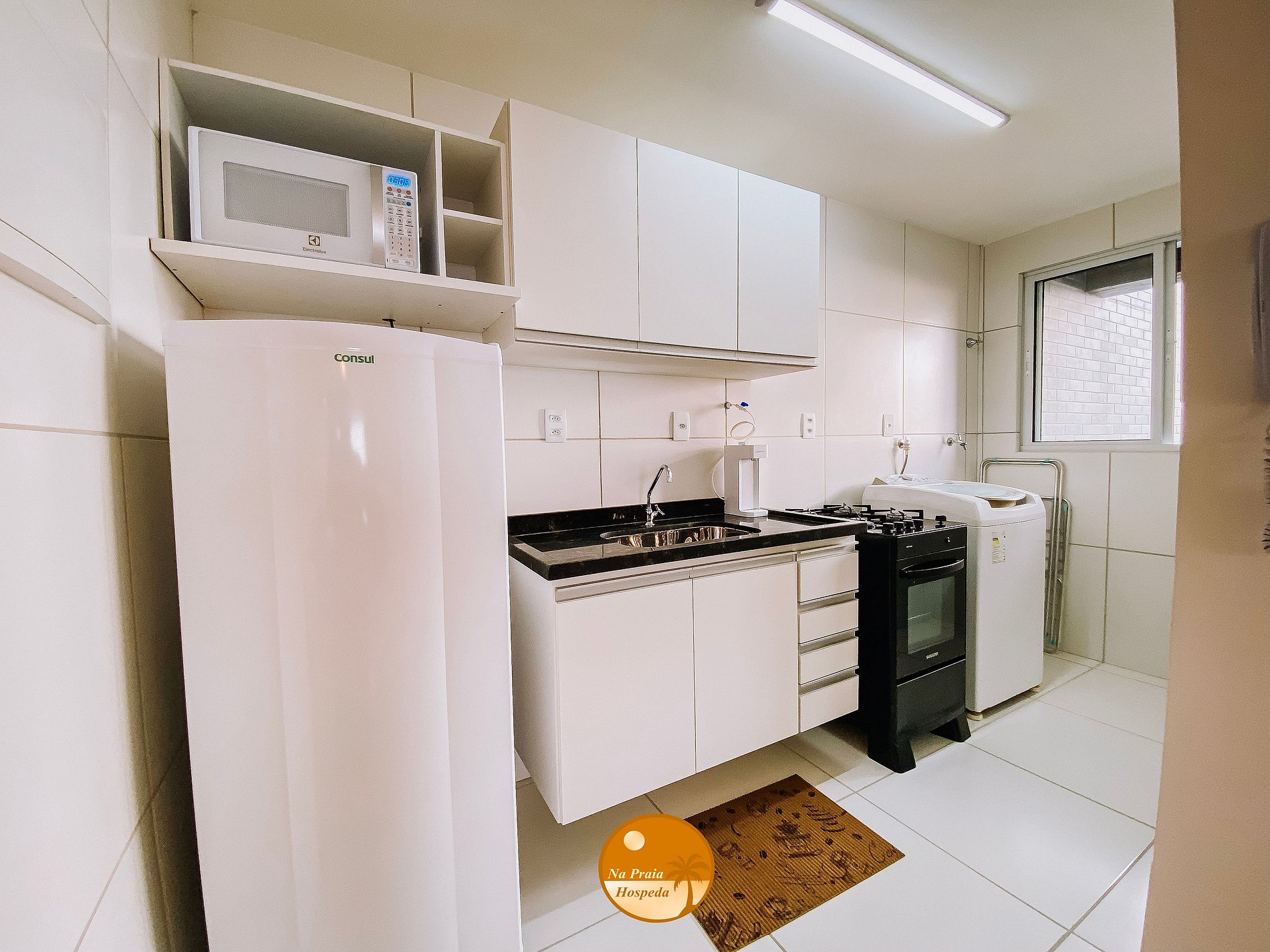Totalmente equipada, Microondas, Geladeira com congelador, Liquidificador, Sanduicheira, Purificador de água, Fogão com 4 bocas e Forno.