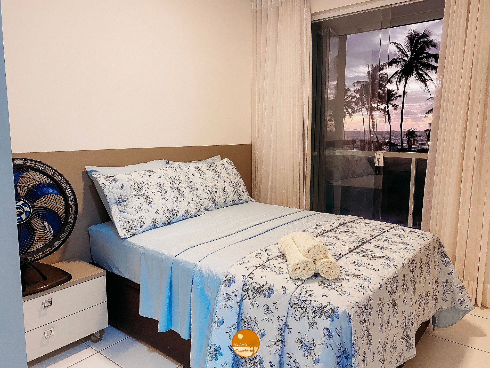 * Quarto 1: 1 Cama de casal, Smart TV, Split, ventilador de meda, Varanda com vista mar, Banheiro completo com água quente, guarda roupas embutido e cortinas blackout.