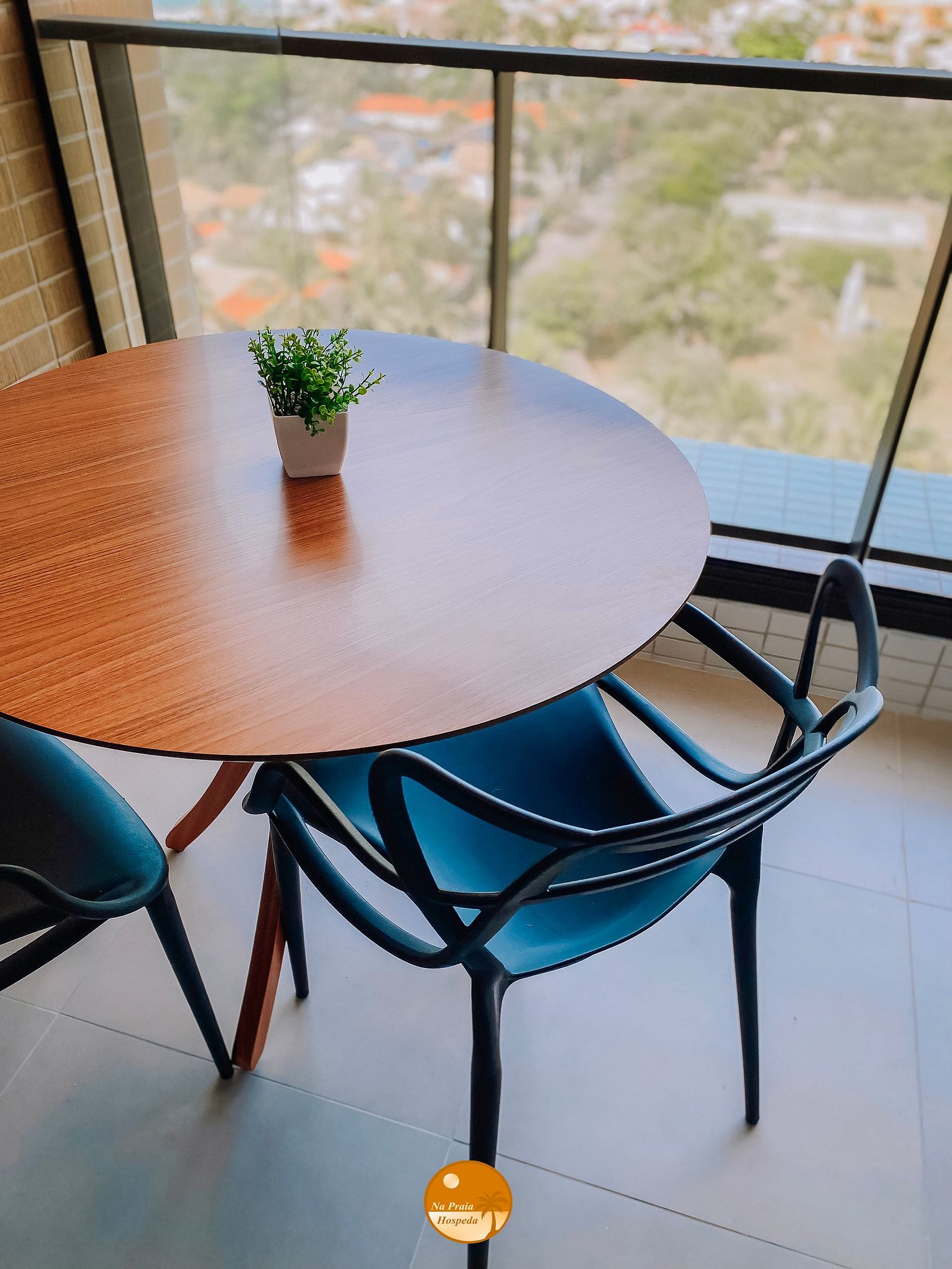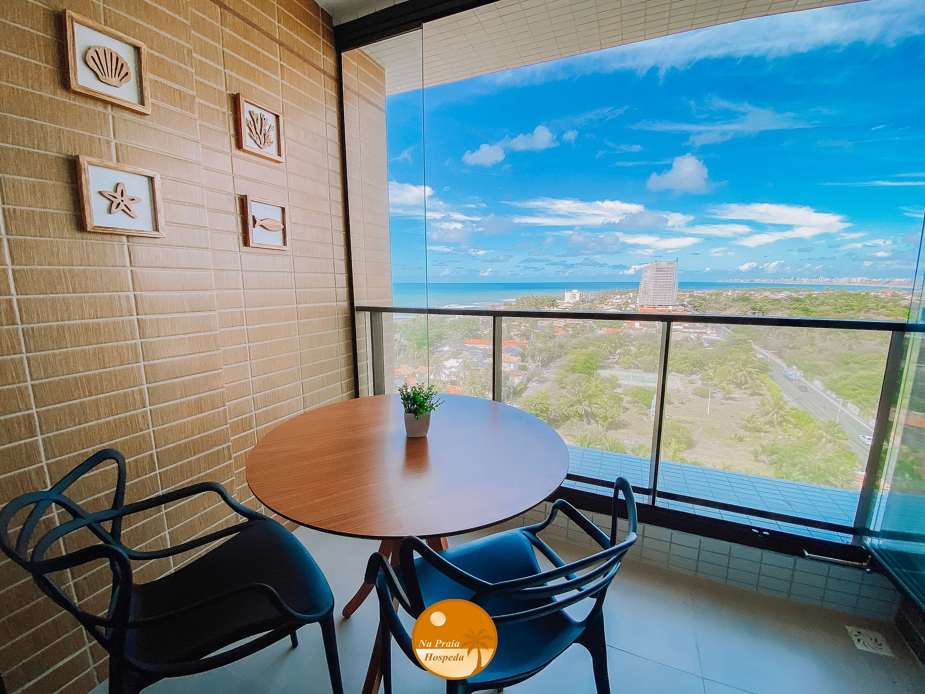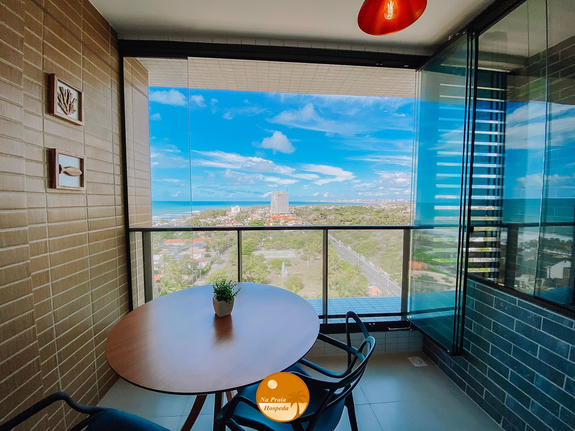 - Varanda com vista lateral para a cidade e para o mar;