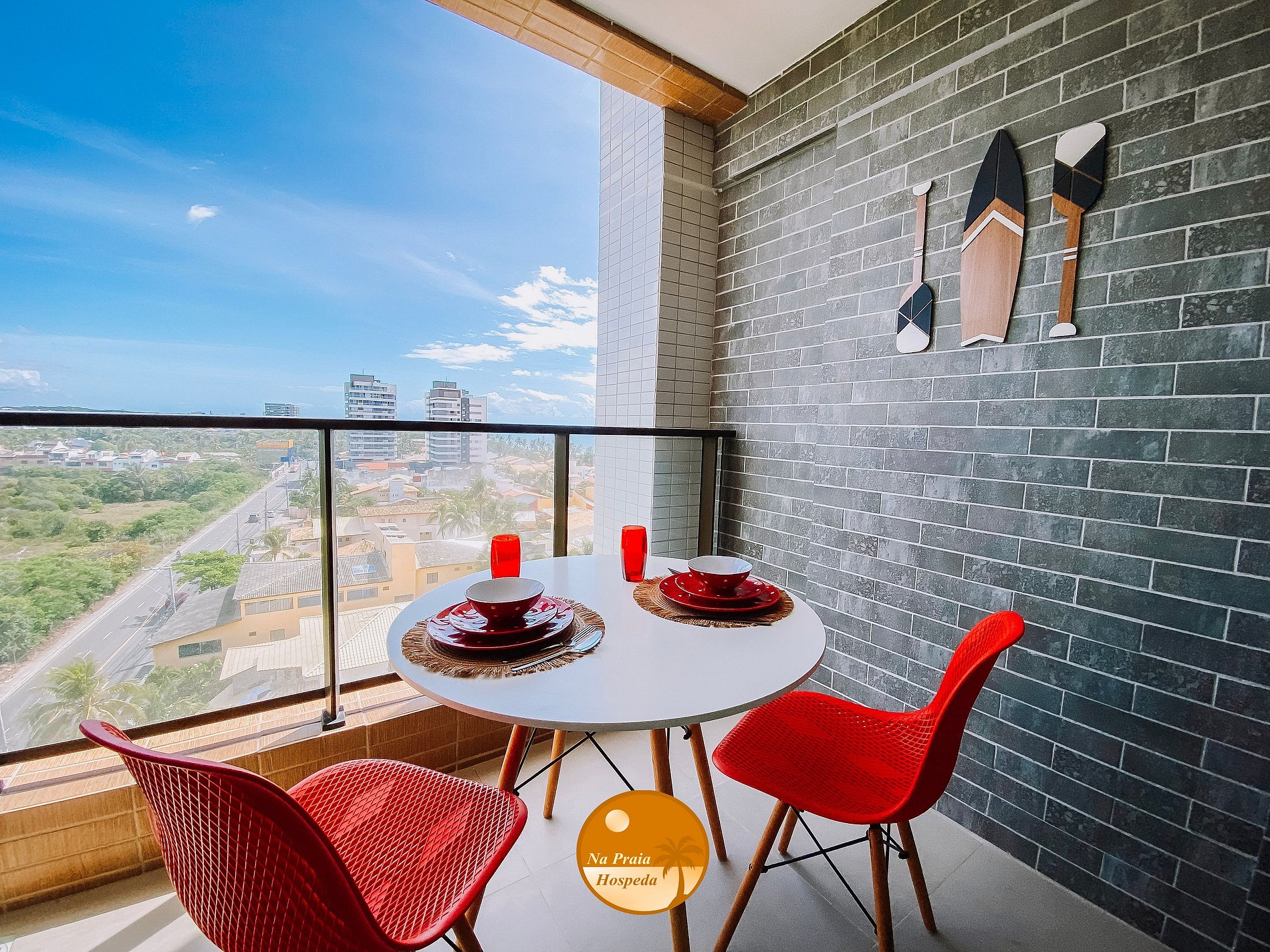 - Varanda com vista lateral para a cidade e para o mar;
