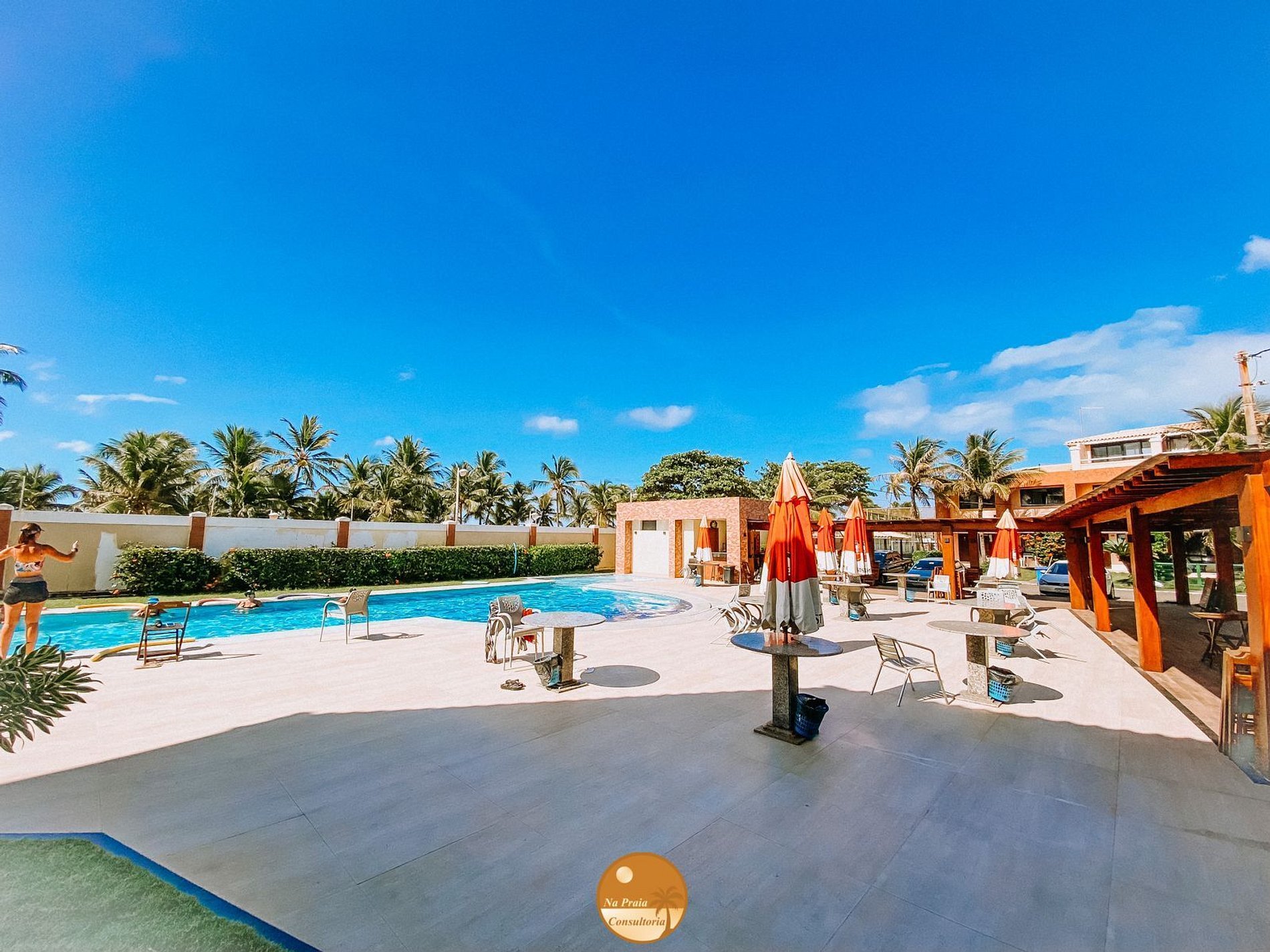 * Estrutura com mesas, cadeiras, guarda sóis, espreguiçadeiras